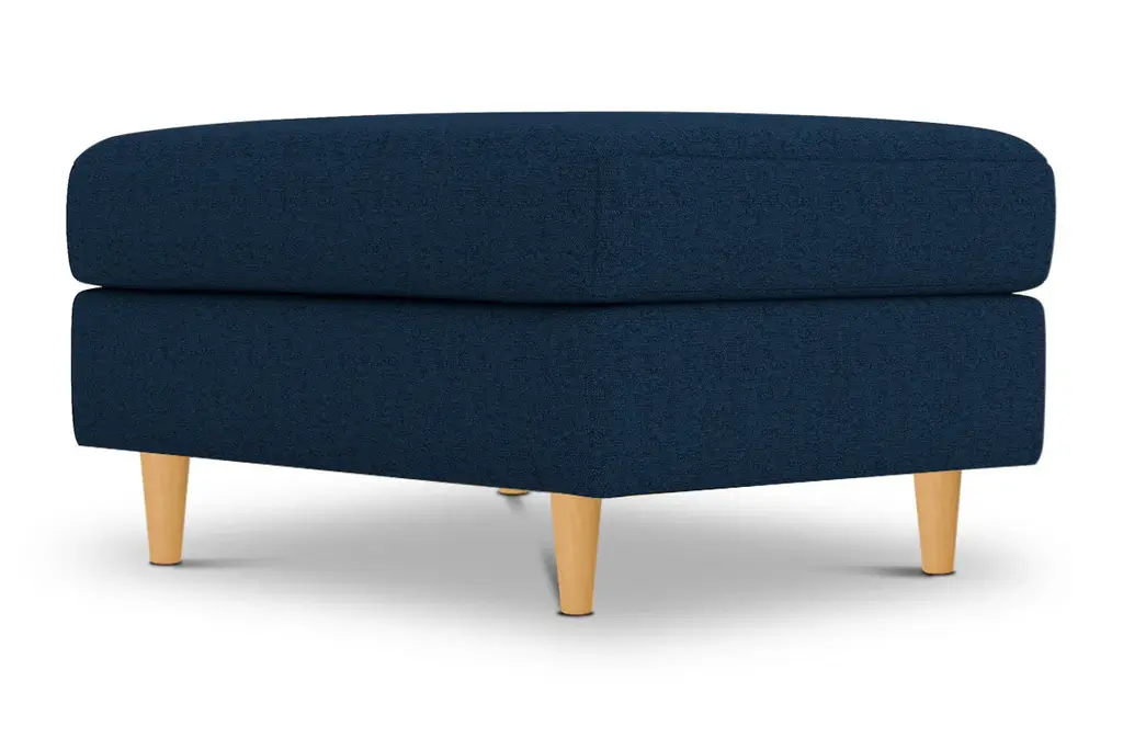 While the Logan Ottoman is designed to perfectly match our Logan Collection, pair it with your existing seating for a more eclectic vibe. Logan can be upholstered in a wide variety of soft, textured poly-blend fabrics, in a handful of sizes and with your choice of three wooden leg finishes. Made in the USA!