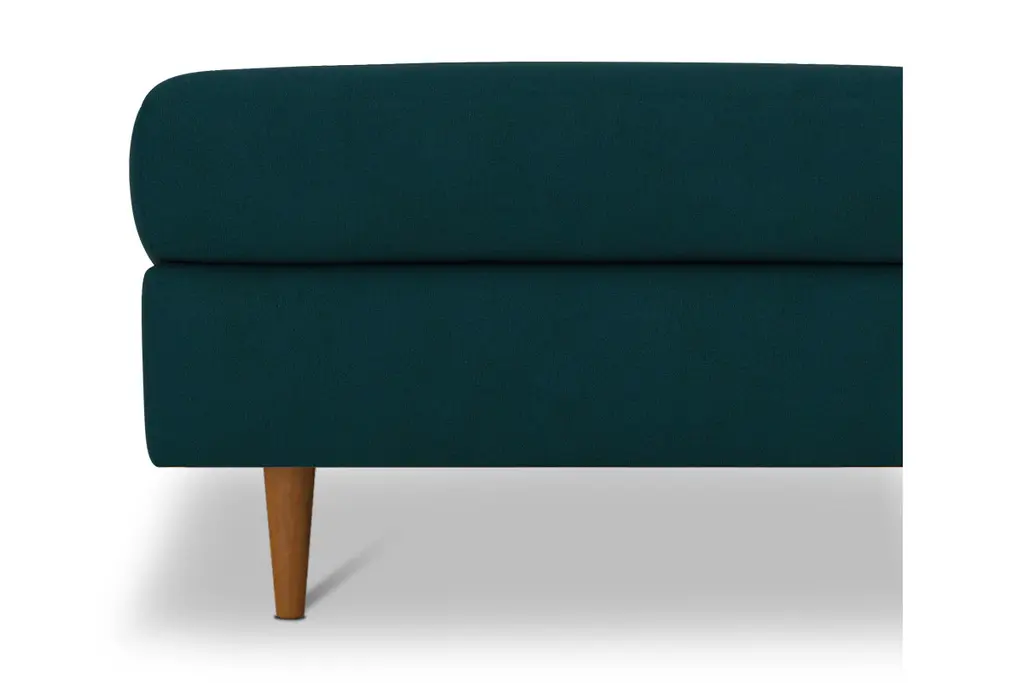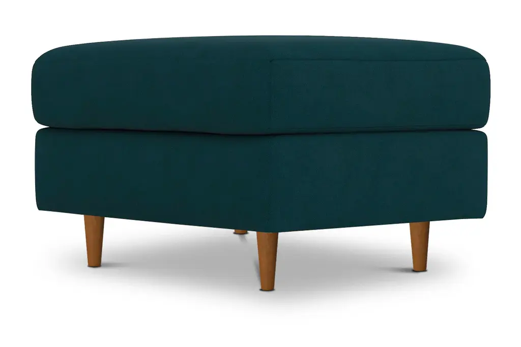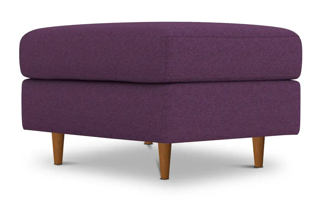 While the Logan Ottoman is designed to perfectly match our Logan Collection, pair it with your existing seating for a more eclectic vibe. Logan can be upholstered in a wide variety of soft, textured poly-blend fabrics, in a handful of sizes and with your choice of three wooden leg finishes. Made in the USA!