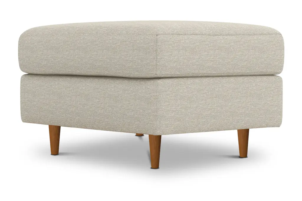 While the Logan Ottoman is designed to perfectly match our Logan Collection, pair it with your existing seating for a more eclectic vibe. Logan can be upholstered in a wide variety of soft, textured poly-blend fabrics, in a handful of sizes and with your choice of three wooden leg finishes. Made in the USA!