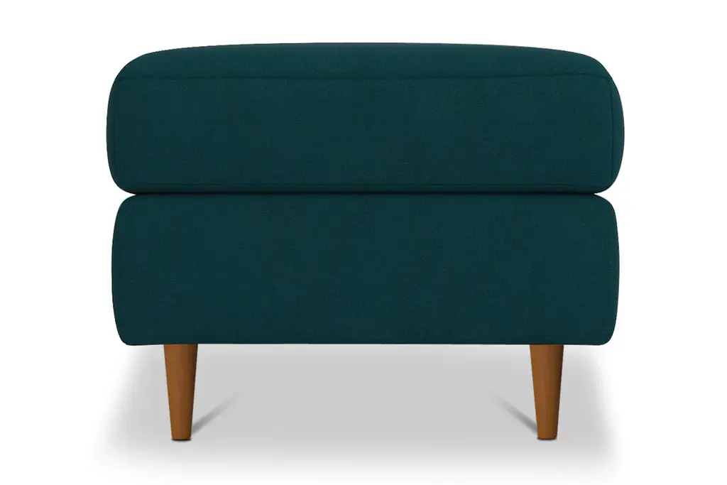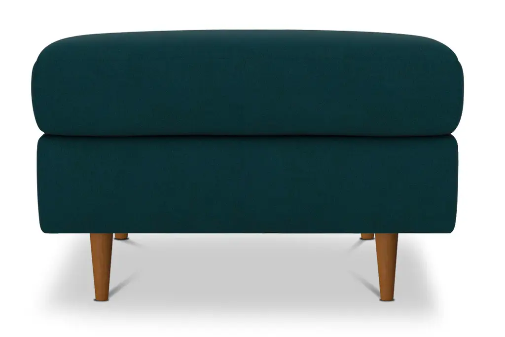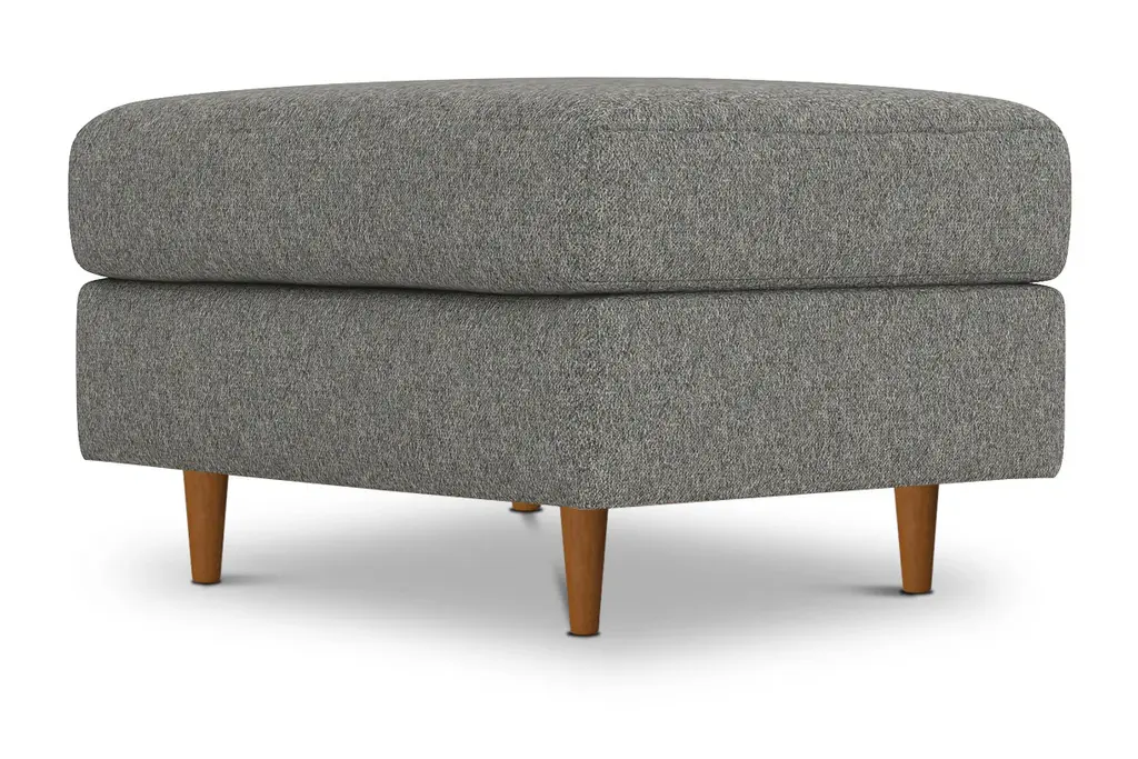 While the Logan Ottoman is designed to perfectly match our Logan Collection, pair it with your existing seating for a more eclectic vibe. Logan can be upholstered in a wide variety of soft, textured poly-blend fabrics, in a handful of sizes and with your choice of three wooden leg finishes. Made in the USA!