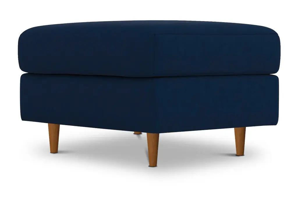 While the Logan Ottoman is designed to perfectly match our Logan Collection, pair it with your existing seating for a more eclectic vibe. Logan can be upholstered in a wide variety of soft, textured poly-blend fabrics, in a handful of sizes and with your choice of three wooden leg finishes. Made in the USA!