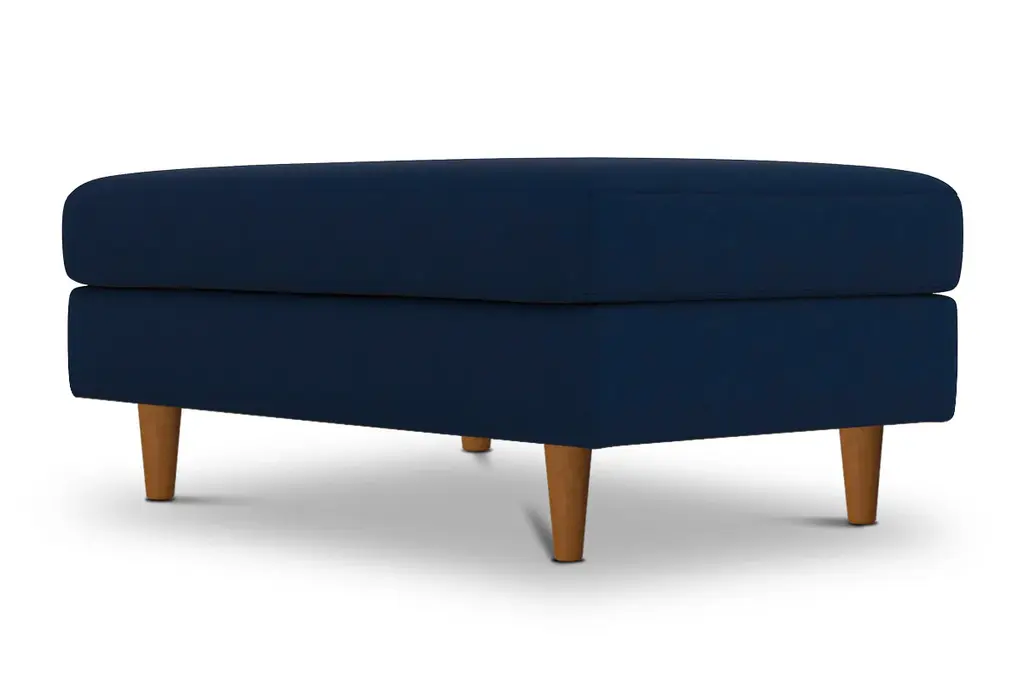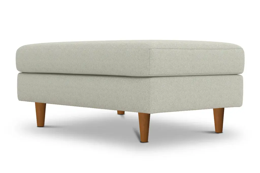 While the Logan Ottoman is designed to perfectly match our Logan Collection, pair it with your existing seating for a more eclectic vibe. Logan can be upholstered in a wide variety of soft, textured poly-blend fabrics, in a handful of sizes and with your choice of three wooden leg finishes. Made in the USA!