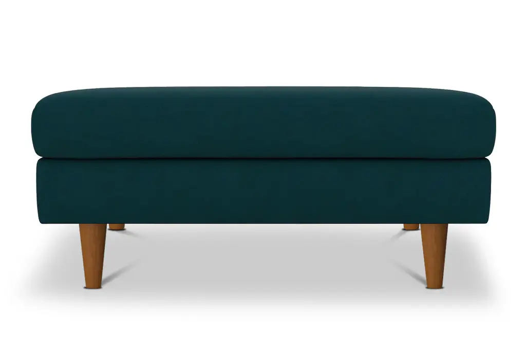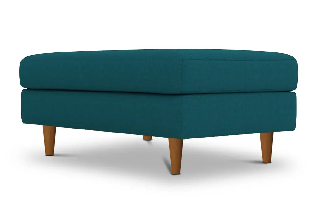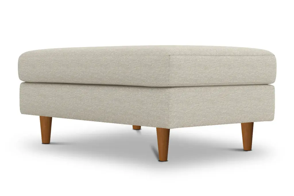 While the Logan Ottoman is designed to perfectly match our Logan Collection, pair it with your existing seating for a more eclectic vibe. Logan can be upholstered in a wide variety of soft, textured poly-blend fabrics, in a handful of sizes and with your choice of three wooden leg finishes. Made in the USA!