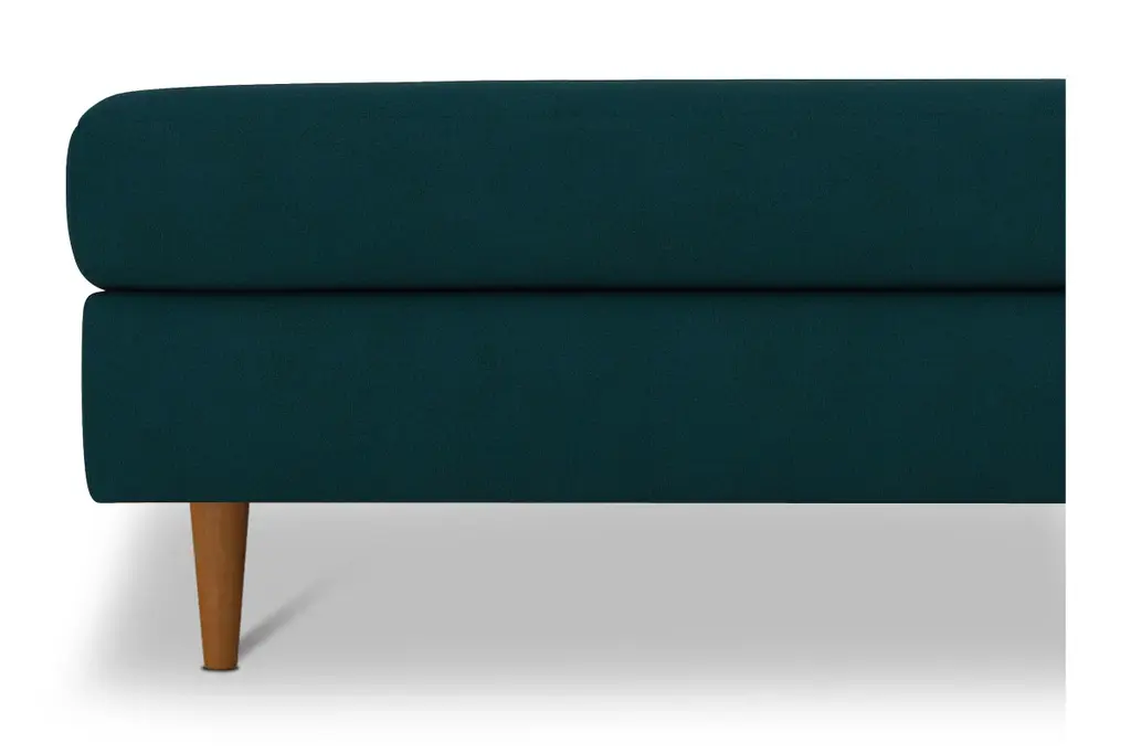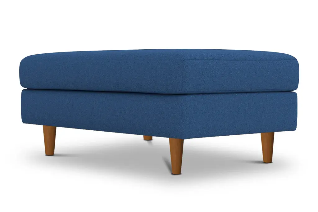 While the Logan Ottoman is designed to perfectly match our Logan Collection, pair it with your existing seating for a more eclectic vibe. Logan can be upholstered in a wide variety of soft, textured poly-blend fabrics, in a handful of sizes and with your choice of three wooden leg finishes. Made in the USA!