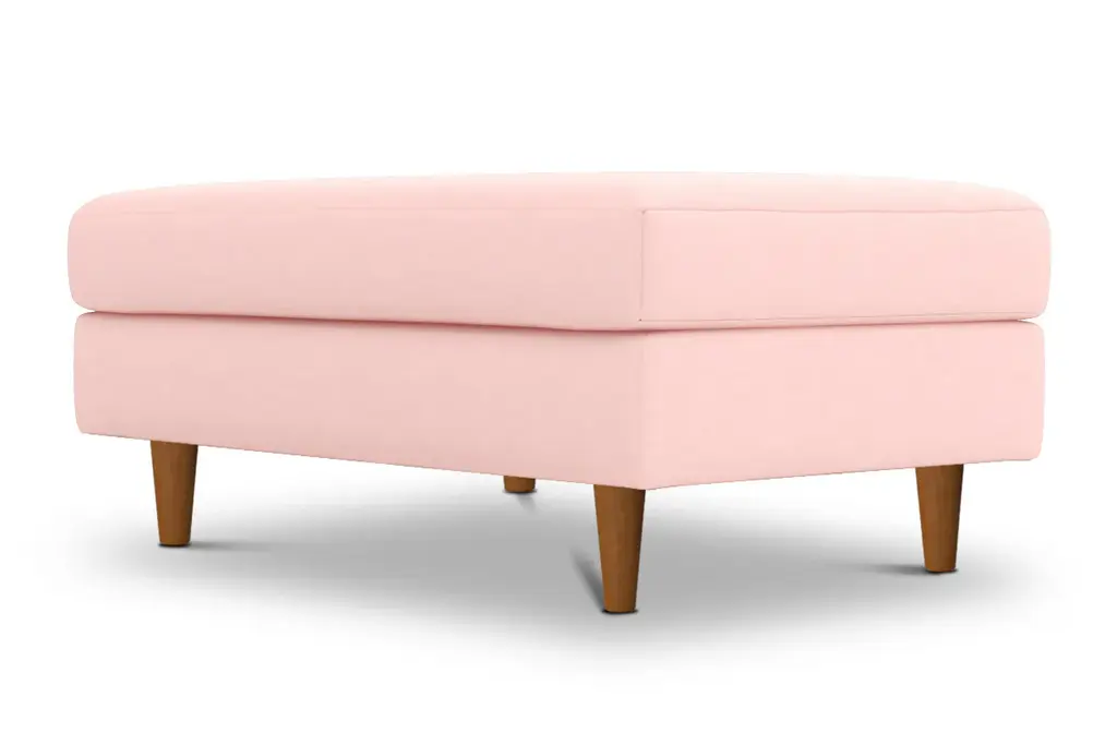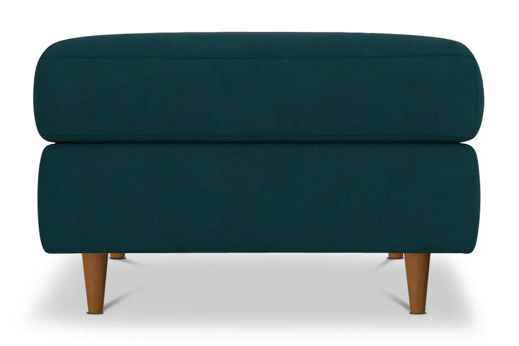 While the Logan Ottoman is designed to perfectly match our Logan Collection, pair it with your existing seating for a more eclectic vibe. Logan can be upholstered in a wide variety of soft, textured poly-blend fabrics, in a handful of sizes and with your choice of three wooden leg finishes. Made in the USA!