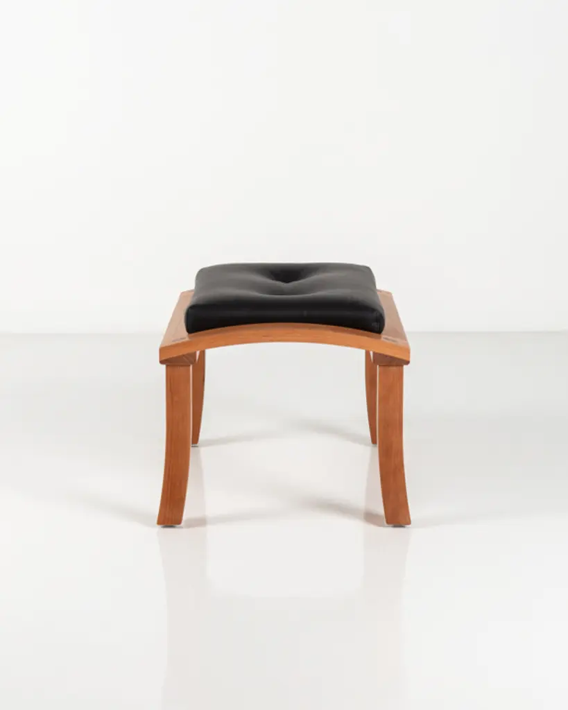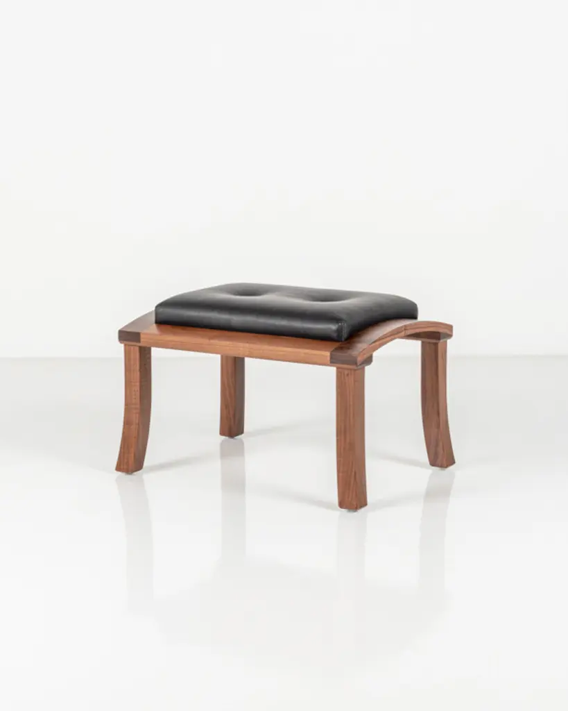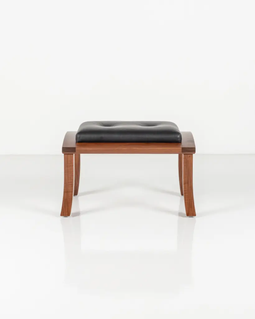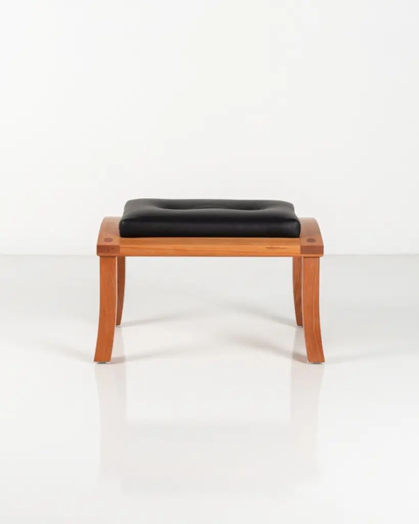 Designed to extend the aesthetic of the Lolling Chair, the Lolling Ottoman shares the same design features: a sturdy, substantial hardwood base finished with a covered cushion that welcomes tired feet. Designed with reference to the post-WWII Heywood Wakefield chair, this distinctive Ottoman’s appeal is every bit as appropriate when paired with other lounge chairs and works in any living space.