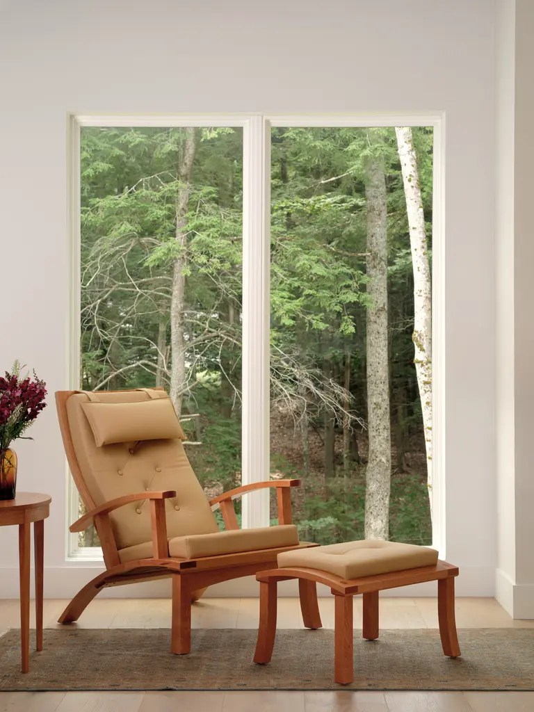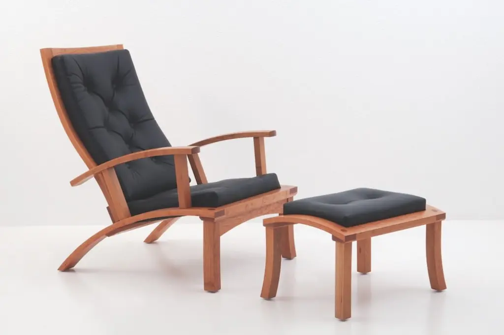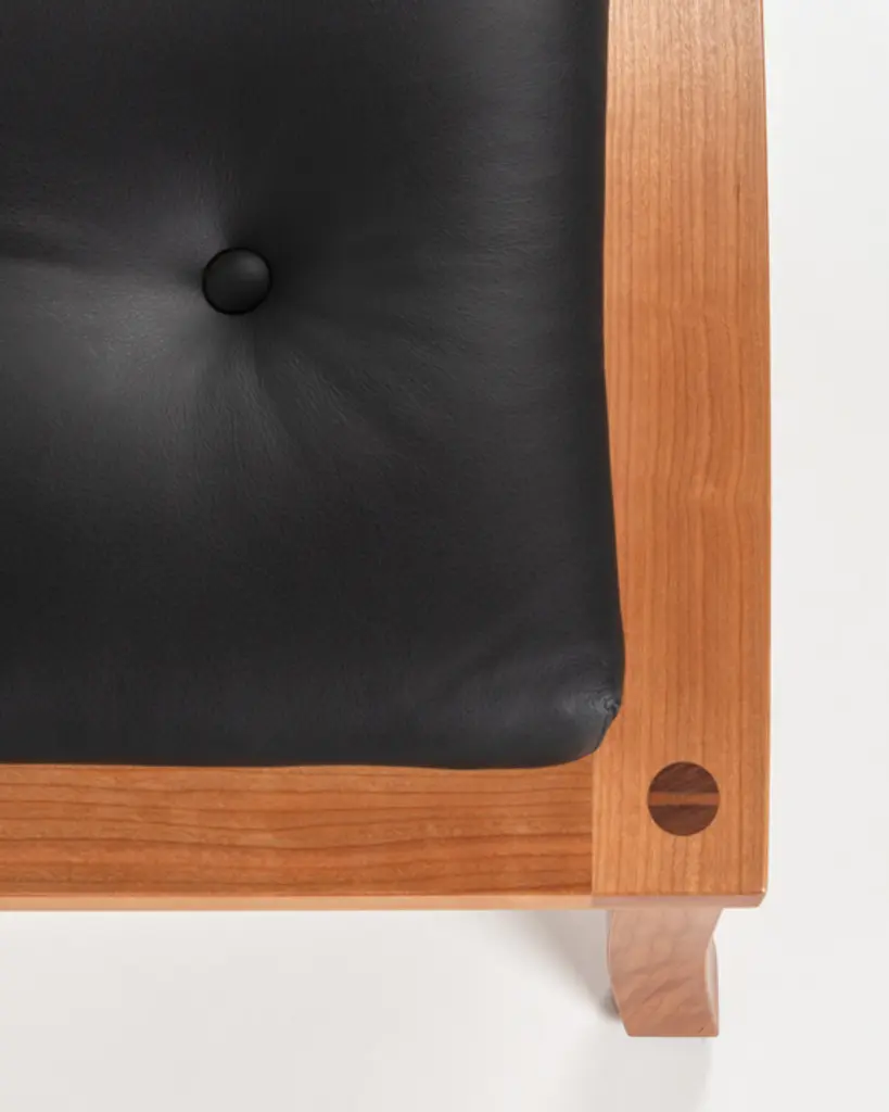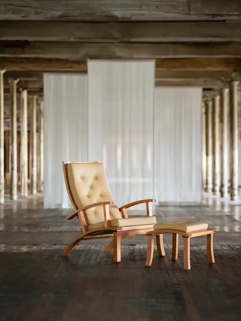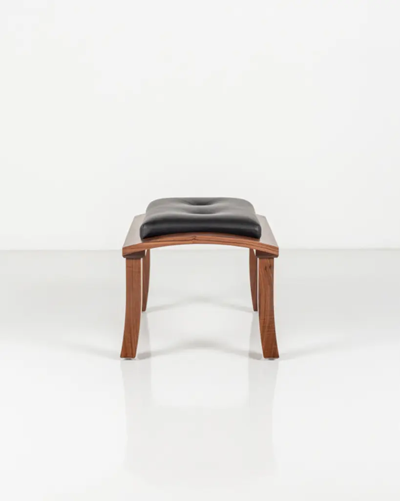 Designed to extend the aesthetic of the Lolling Chair, the Lolling Ottoman shares the same design features: a sturdy, substantial hardwood base finished with a covered cushion that welcomes tired feet. Designed with reference to the post-WWII Heywood Wakefield chair, this distinctive Ottoman’s appeal is every bit as appropriate when paired with other lounge chairs and works in any living space.