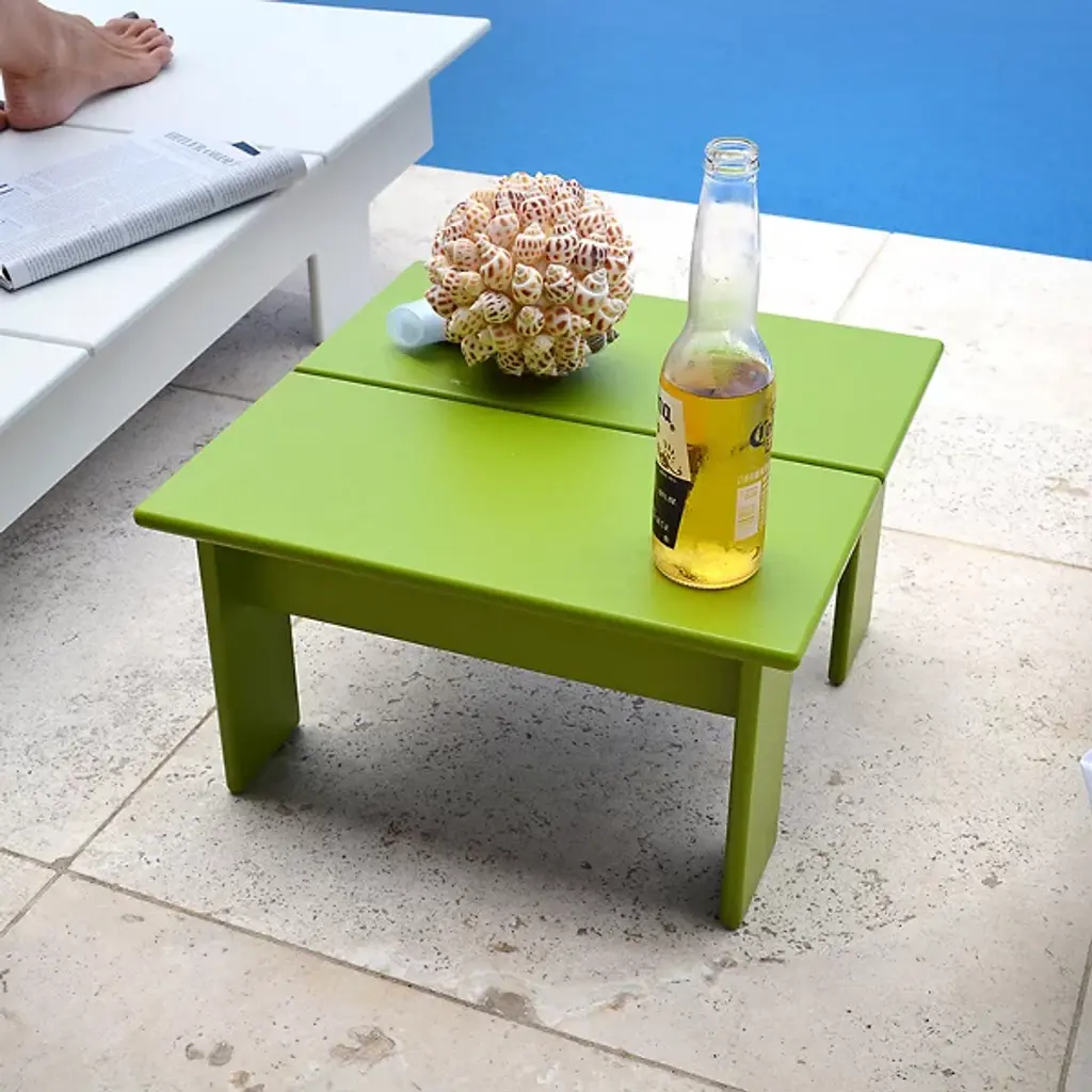 It may be little, but it sure is mighty. Whether you need to rest your refreshments or rest your feet, the Lollygagger Ottoman/Side Table from Loll Designs is there for you. Through the harsh sun and icy snow of the seasons, this piece looks and performs just as well as when your first got it. Its ruggedness stems from high-density polyethylene. This isn’t any other HDPE construction, it’s made using reclaimed milk jugs, seventy-two to be exact. The material is fashioned into a clean geometric design fitting of the modern or contemporary home. Its weather-resistant properties make it painless to take care of.