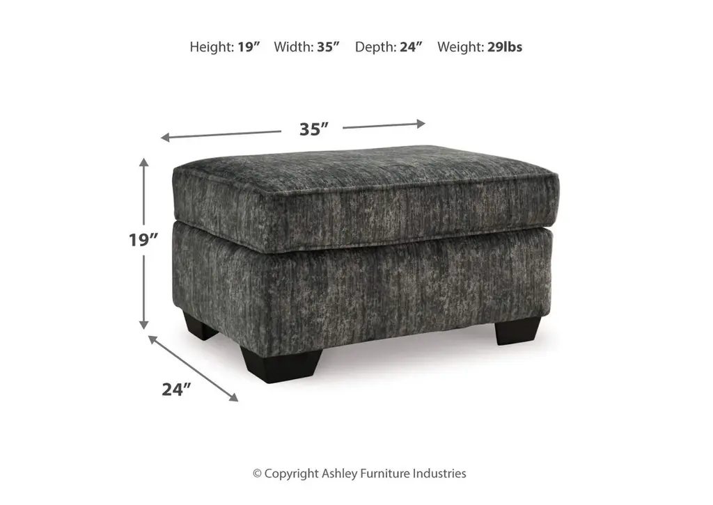 The Lonoke ottoman speaks to those drawn to fresh, contemporary style with richly neutral appeal. Its firmly cushioned top offers room for comfort. Subtle and sophisticated, the plush upholstery and dark tri-block legs are a natural complement for so many color schemes. Weight 29.000 lbs. (13.05kgs.)