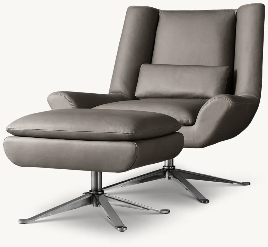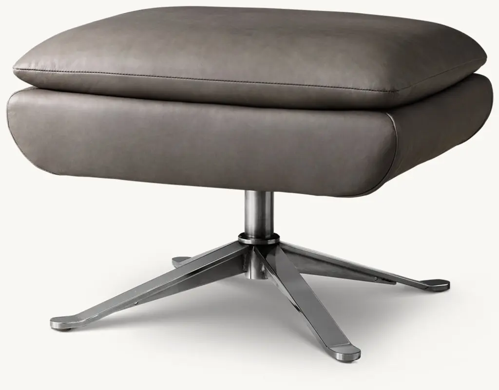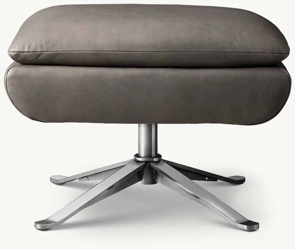 Set atop a sleek metal base, our ottoman is inspired by the modern forms of 1970s Italian design. ALSO AVAILABLE IN FABRIC