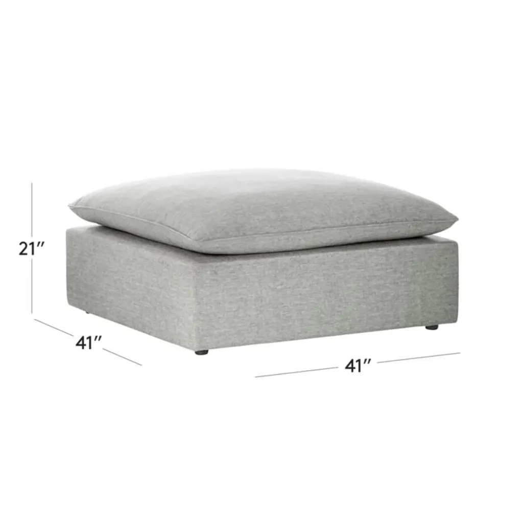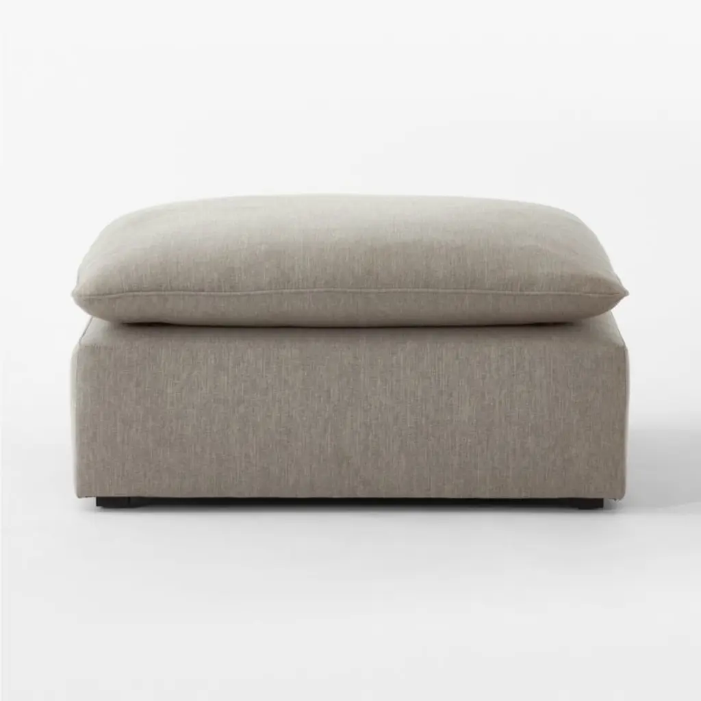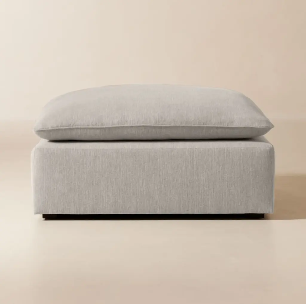 Sink into relaxed luxury with this low-slung design by Mermelada Estudio. Certified sustainable by the Forest Stewardship Council (FSC), the ottoman's wood frame is paired with a deep, pillow-topped cushion. Soft, linen-like performance fabric is finished with a clean piping welt. Pair with the armless or corner chairs for a configuration that fits your space. CB2 exclusive.