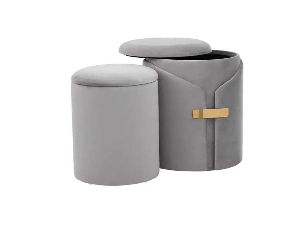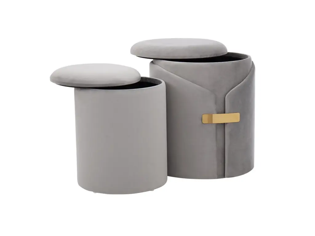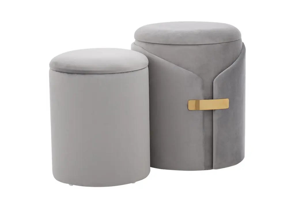 Elegant and simple, the Dahlia Ottoman by LumiSource will furnish any area with style. This set features a luxuriously soft cushioned velvet top and a goldtone metal accent. The smaller ottoman nests inside the larger ottoman for a space-saving design.