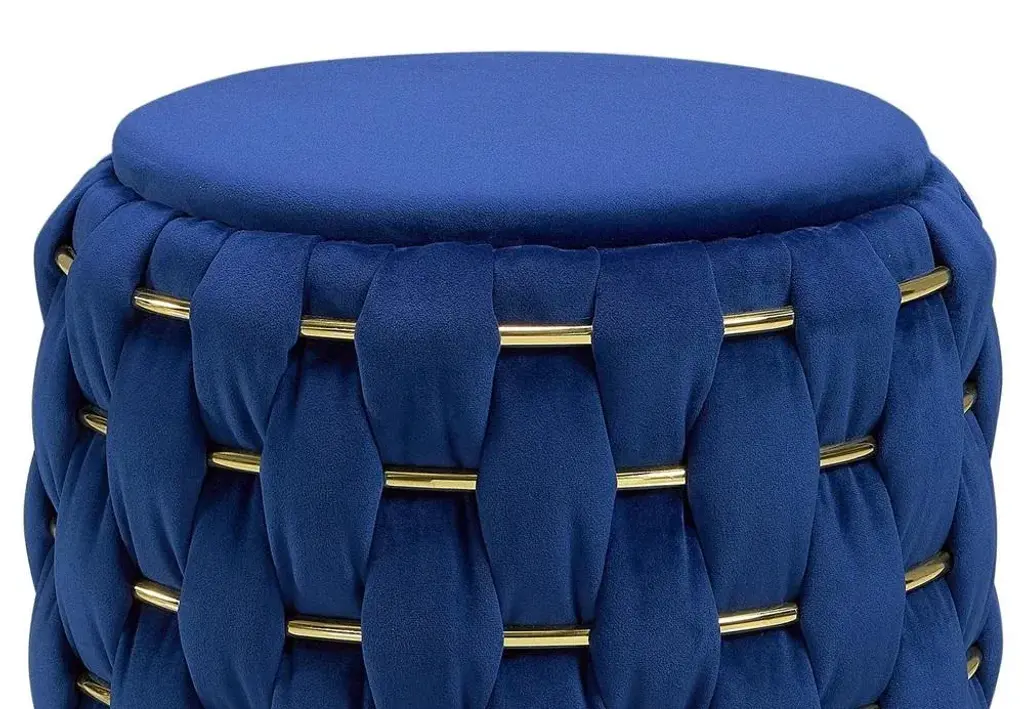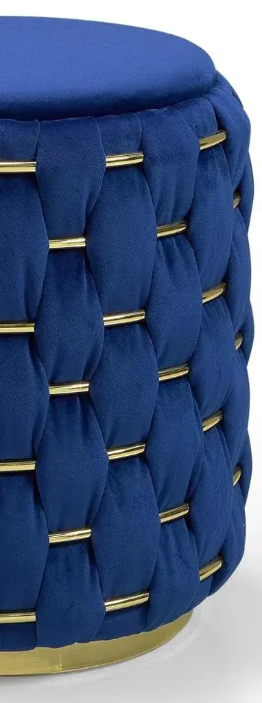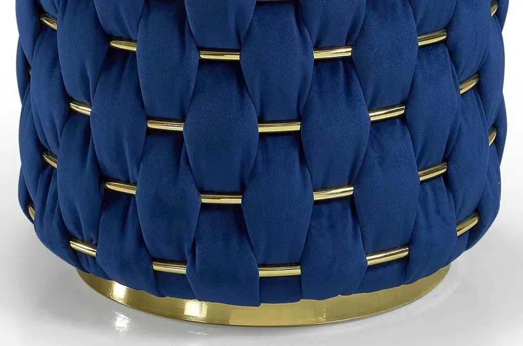 Lust Ottoman by Memoir Essence Dimensions: D 45 x W 45 x H 50 cm. Materials: Polished brass and blue velvet fabric. Lust Ottoman is an extension of Lust collection to a different versatility with same refinement. Besides being a small piece, this ottoman is strong in details, bringing the same handmade work as all the Lust collection, combining brass and velvet in an hand-whickered work.