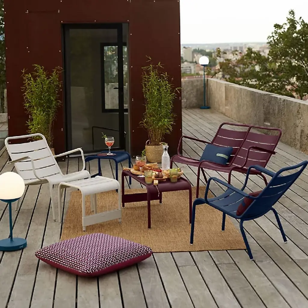 The Fermob Luxembourg Small Low Table/Ottoman is a small piece that does a lot. Functionally, it can be used either as a small side table or as a footrest for the Low Armchair or Rocking Chair. Aesthetically, it complements those larger pieces with its smooth and durable aluminum construction and array of colors.