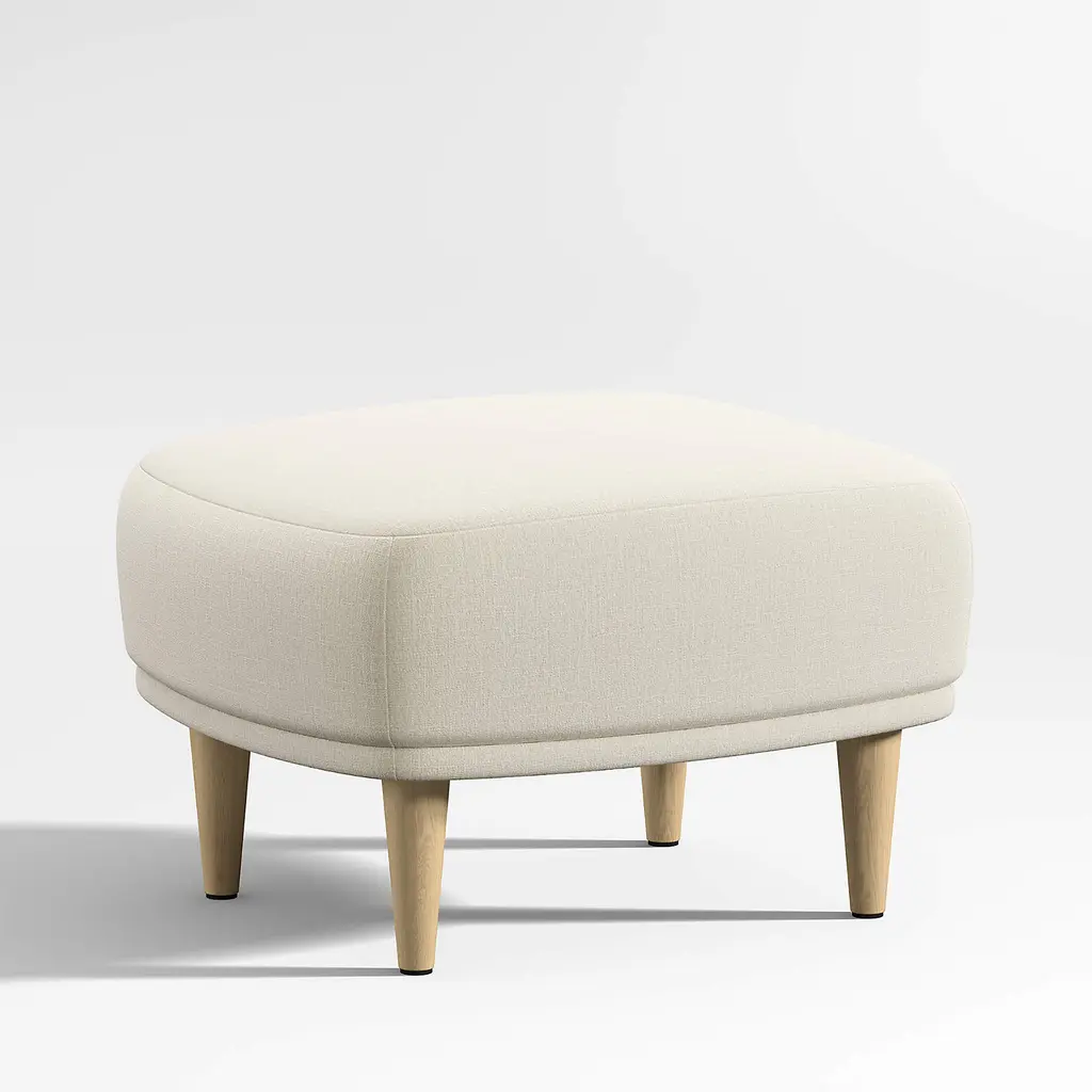 Our Lyric ottoman features soft curves, crisp tailoring and a petite footprint. The thick rectangular cushion is firm and supportive, resting on tapered wood legs for modern, go-with-anything style. The natural-colored upholstery easily adapts to any setting, from nursery to big-kid room to shared family space. Pair it with the Lyric swivel glider chair for the ultimate resting spot.