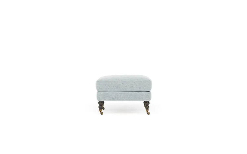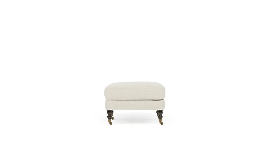 A welcome addition to any modern or traditional living space, the Madeline ottoman lends versatility to your home. Turned wood legs with brass casters effortlessly dress up the silhouette. Whether paired with the Madeline chair or utilized as an extra seat when entertaining, this piece is endlessly functional. Choose from a variety of upholstery options, including linen, velvet, and performance fabrics.