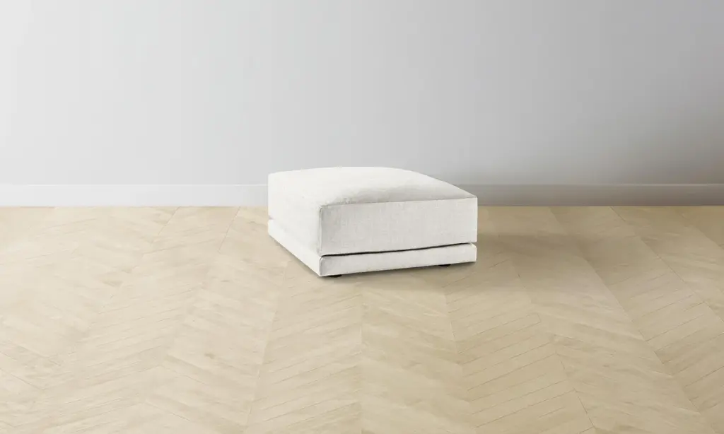 The Madeline ottoman is a welcome addition to any modern or traditional living space. Tailored upholstery extends to the floor on this timeless, versatile piece. The cushion is soft yet supportive, with a foam core surrounded by a blend of fiber, down, and feather fill. Whether paired with the Madeline swivel chair or utilized as an extra seat when entertaining, this ottoman is endlessly functional. Choose from a variety of upholstery options, including linen, velvet, and performance fabrics.