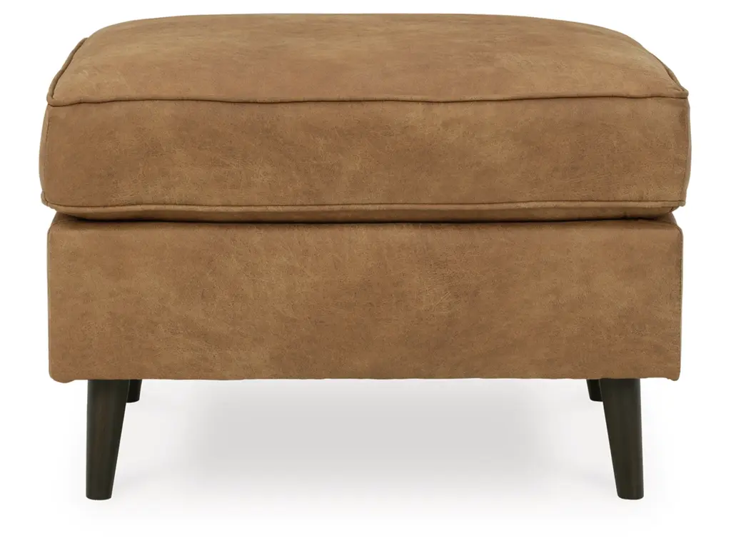 The Maimz ottoman is mid-century revival done to perfection. Linear and minimalistic, the beautifully edited profile includes tapered splayed legs for a signature retro aesthetic. So casually cool, the caramel faux leather upholstery brings the look right into the present.