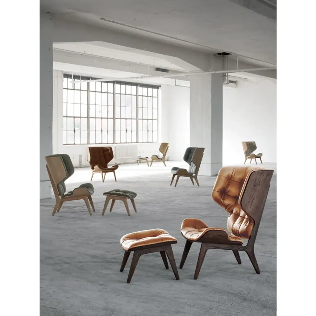 NORR11’s Mammoth ottoman comprises a solid oak frame and generous cushioning upholstered in aniline leather. The bent plywood seat gives the ottoman a beautiful, curved finish. You can pair the ottoman with the Mammoth lounge chair and use it as a footstool or extra seat in the living room. Designed by Rune Krøjgaard and Knut Bendik Humlevik, the Mammoth series was released in 2011. The Mammoth lounge chair and ottoman have clear influences from the mid-century Scandinavian design yet boast a fresh and contemporary feel, making them a perfect fit for both classic and modern interiors.