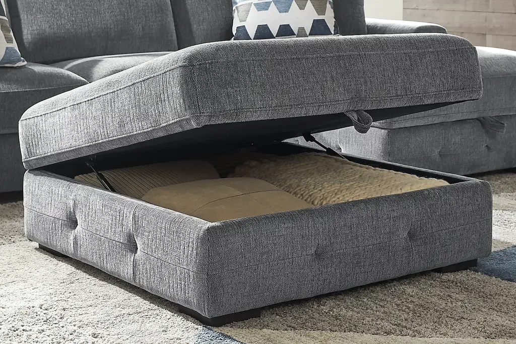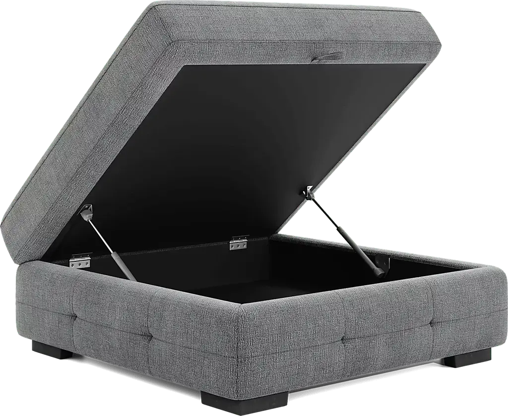 The Marcola storage cocktail ottoman is the perfect addition to any living room. Upholstered in soft woven fabric, the ottoman comes in an ash gray color. Spacious in size, this piece has plenty of room to hold all your essentials, like extra pillows and blankets, and can even double as a comfortable seat during get-togethers. Upholstery: 100% Polyester.