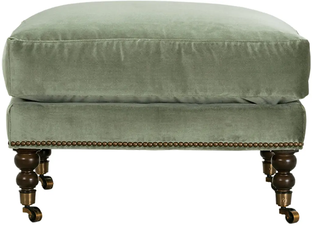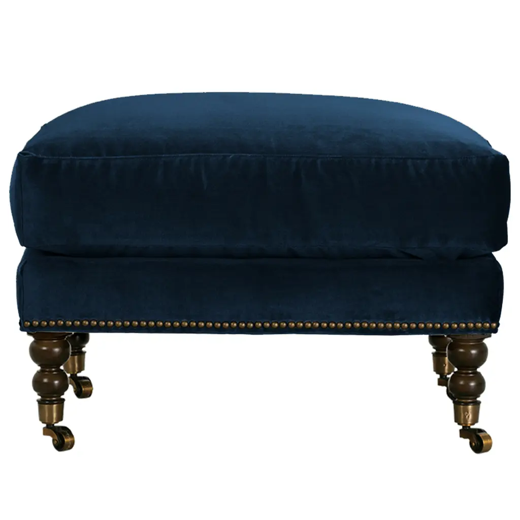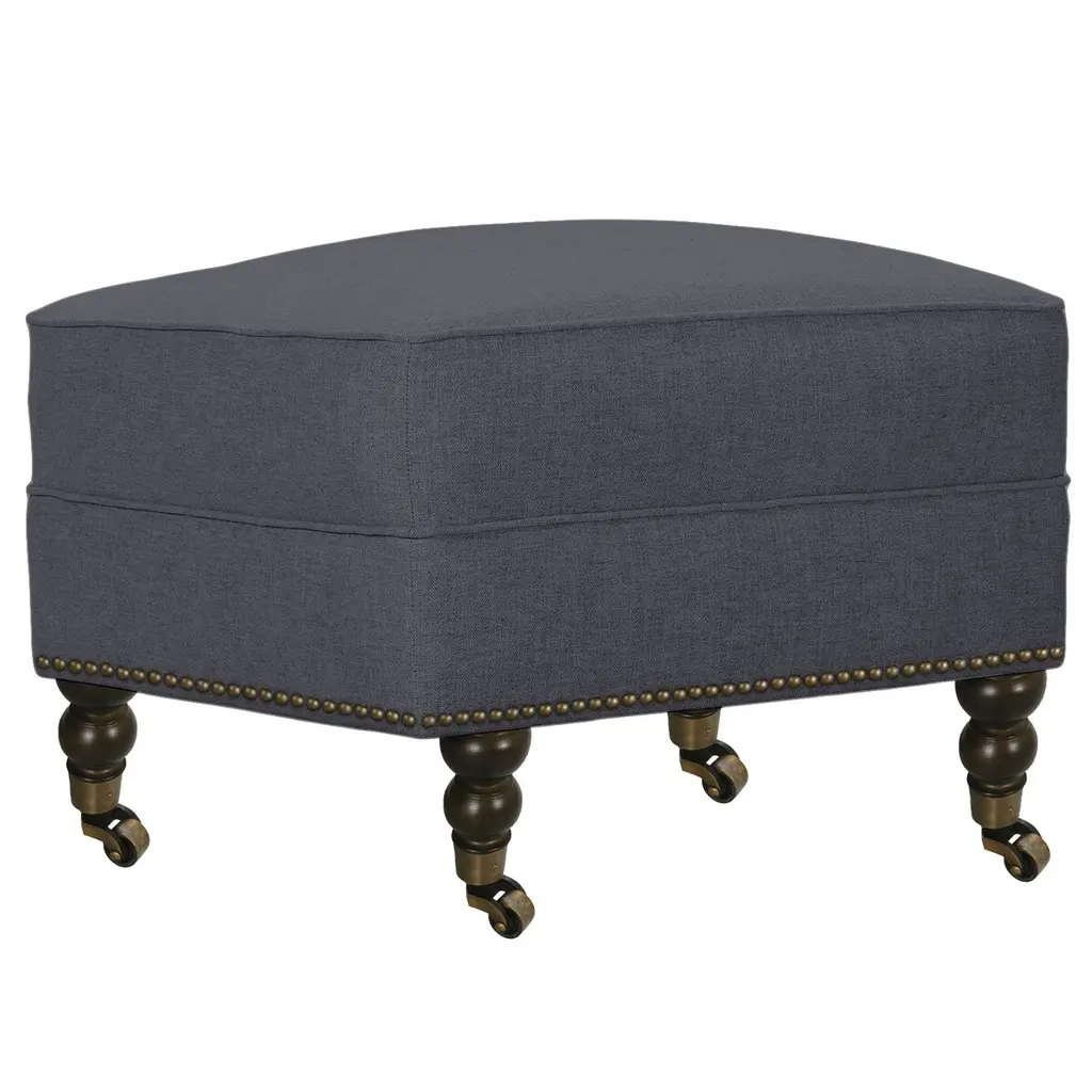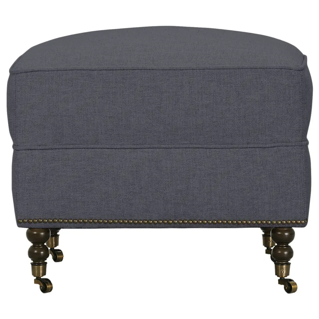 Exclusive to One Kings Lane: Combining timeless elegance with exceptional comfort, the Margot Linen-Blend Ottoman is a statement of sophisticated style. Upholstered in a refined linen-blend fabric, the ottoman features brass nail-head trim and beautifully turned legs, exuding classic charm. With plush feather-and-down cushioning, the Margot offers supreme comfort, making it perfect for relaxing or as an additional seating option. Also of note:• Brass casters complement the nail-head detailing, allowing for easy mobility without scratching floors.• Crafted with a kiln-dried hardwood frame, ensuring durability and strength for years of use.
