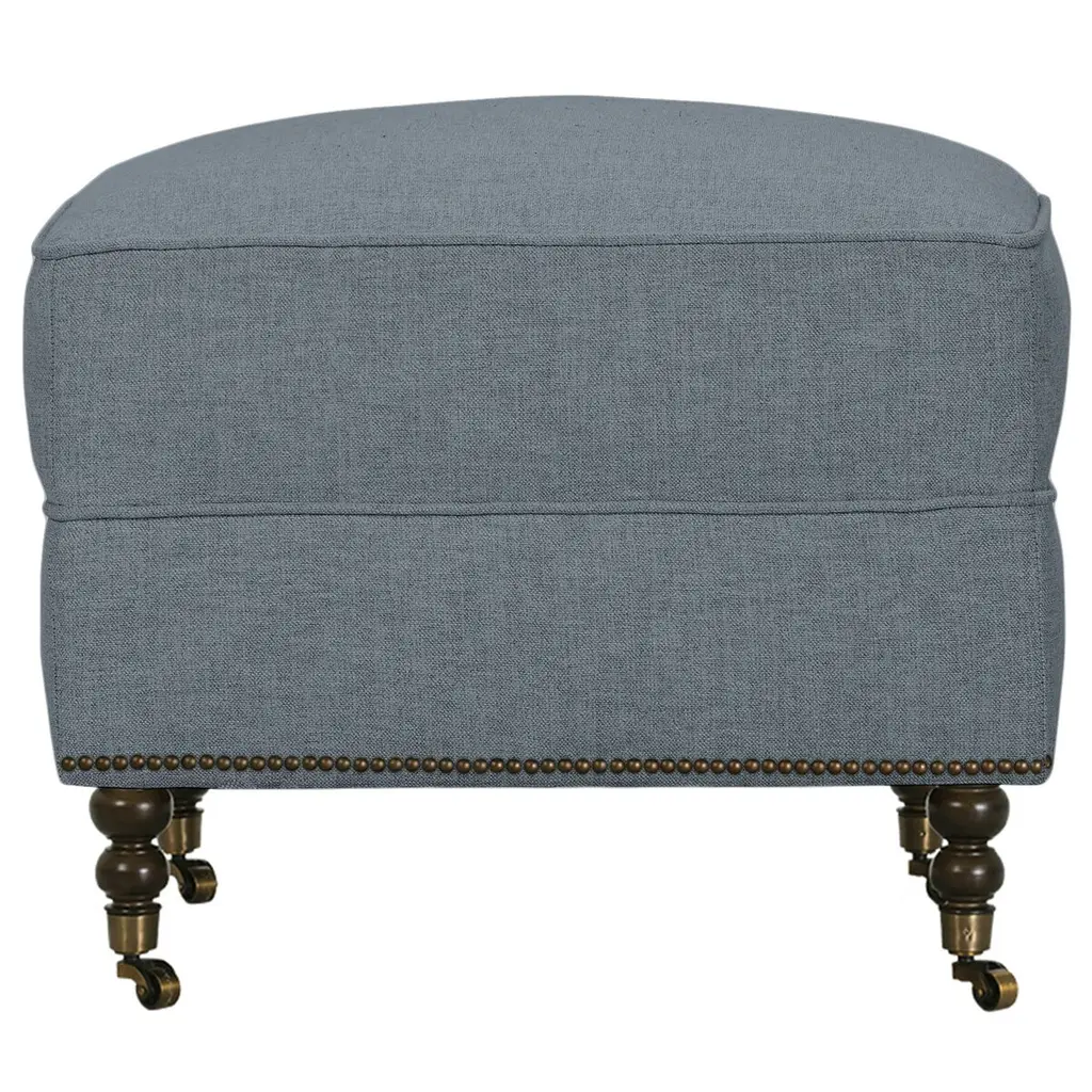 Exclusive to One Kings Lane: Combining timeless elegance with exceptional comfort, the Margot Linen-Blend Ottoman is a statement of sophisticated style. Upholstered in a refined linen-blend fabric, the ottoman features brass nail-head trim and beautifully turned legs, exuding classic charm. With plush feather-and-down cushioning, the Margot offers supreme comfort, making it perfect for relaxing or as an additional seating option. Also of note:• Brass casters complement the nail-head detailing, allowing for easy mobility without scratching floors.• Crafted with a kiln-dried hardwood frame, ensuring durability and strength for years of use.