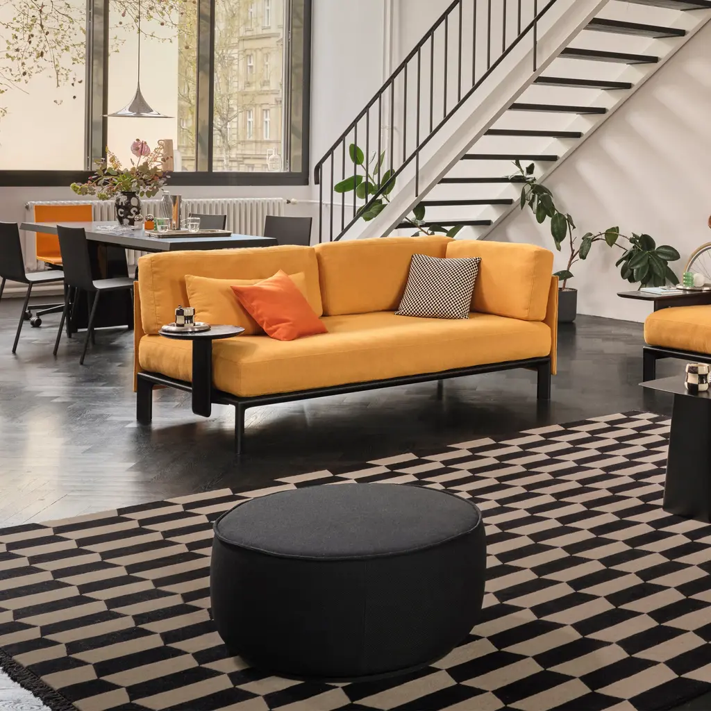 Matching the soft shapes of the sofa, two ottomans combine beautifully with the various sofa sizes. They feature a distinctive seam exactly aligned to the height of the cushion seams on the sofa, emphasizing their place in the Mariposa family. Features