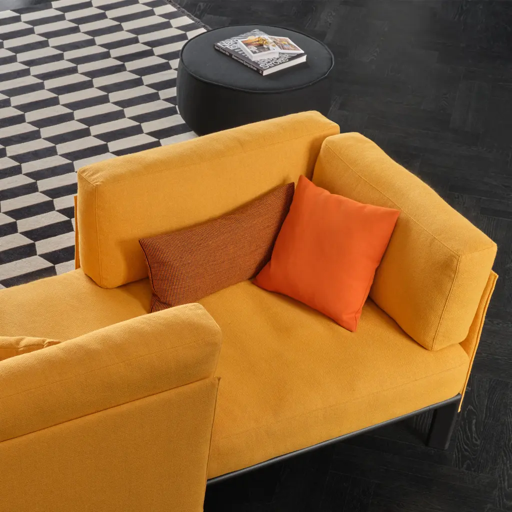 Matching the soft shapes of the sofa, two ottomans combine beautifully with the various sofa sizes. They feature a distinctive seam exactly aligned to the height of the cushion seams on the sofa, emphasizing their place in the Mariposa family. Features