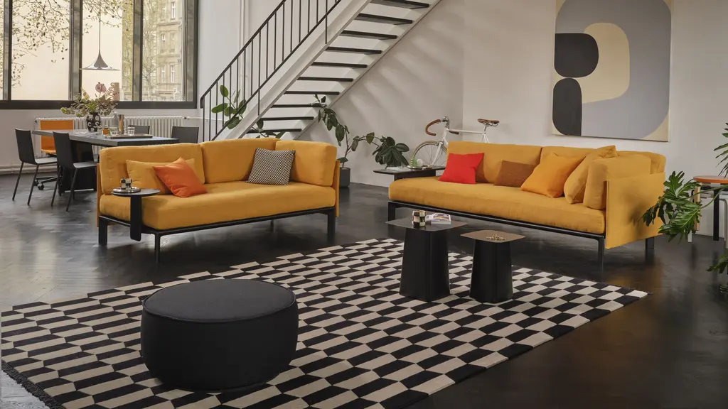 The variously sized sofas of the Mariposa family can be combined with round ottomans in two different sizes. They harmonise with the soft contours of the sofas and create even more ways to enjoy Mariposa's superb comfort.