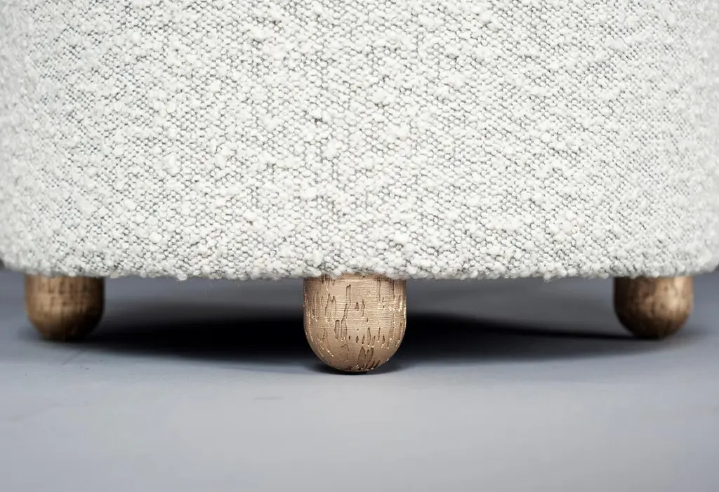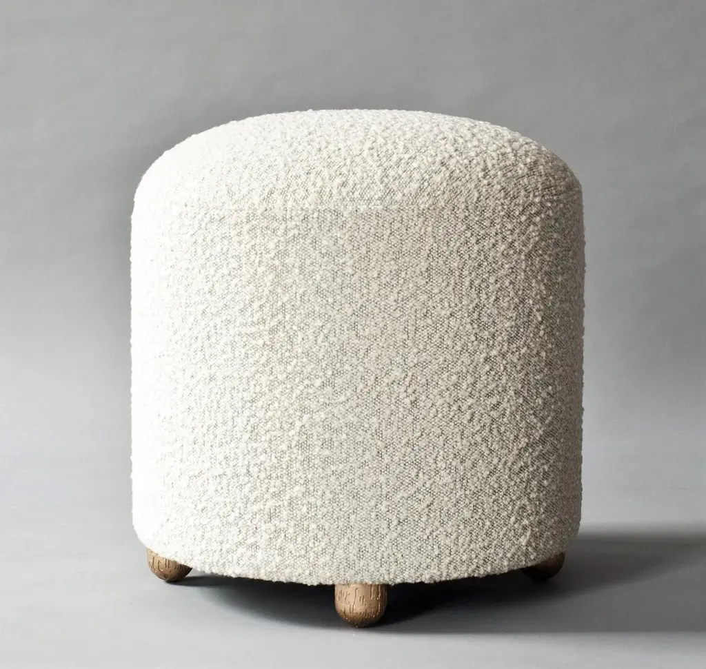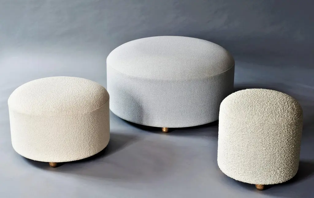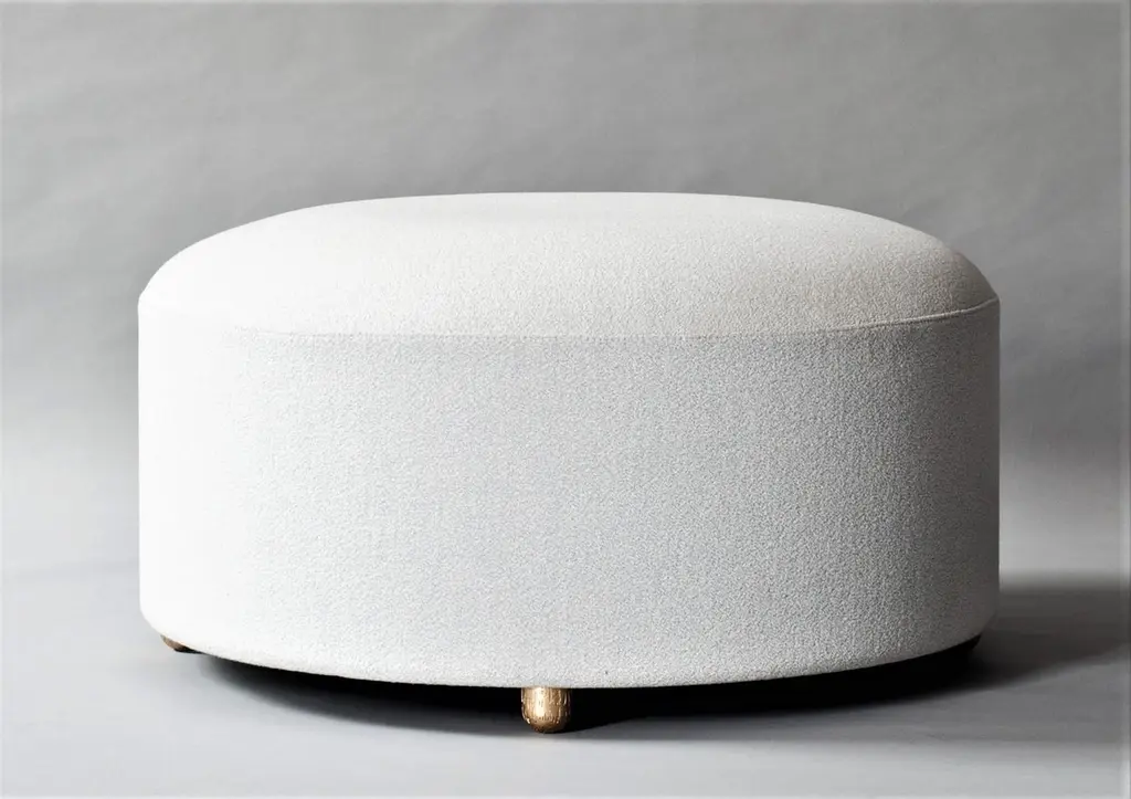 Simple, cylindrical, and upholstered in the round, the Marly Ottoman collection offers sculptural and versatile options for additional everyday seating. Dome-like tops yield optimal comfort while low textured legs of hand-cast metal lend gleaming accents.Offered in other sizes:MEDIUM: 600mm [23.5"] (DIA) X 381.5mm [15"] (H)SMALL: 450mm [17.5"] (DIA) X 451.5mm [18"] (H)3 Meters/ 3.5 Yards of 54” width fabric in solid color. Contact us for quantity in patterned fabric.