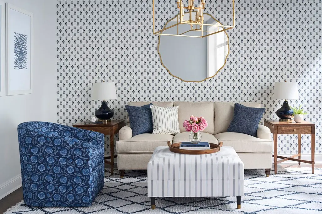 Martin Square Cocktail Ottoman, Mariner Stripe Sunbrella