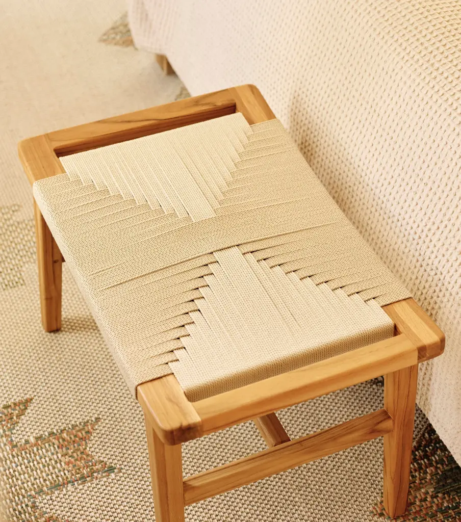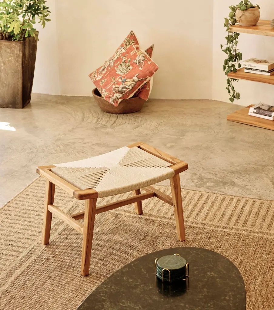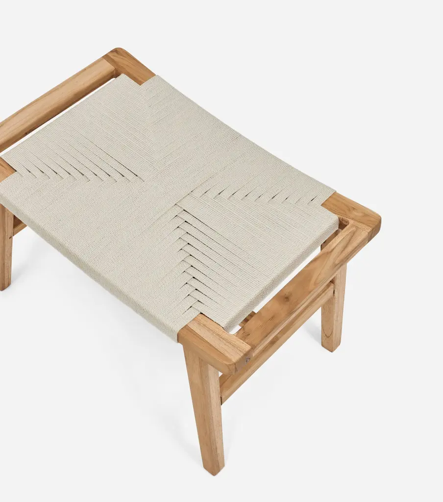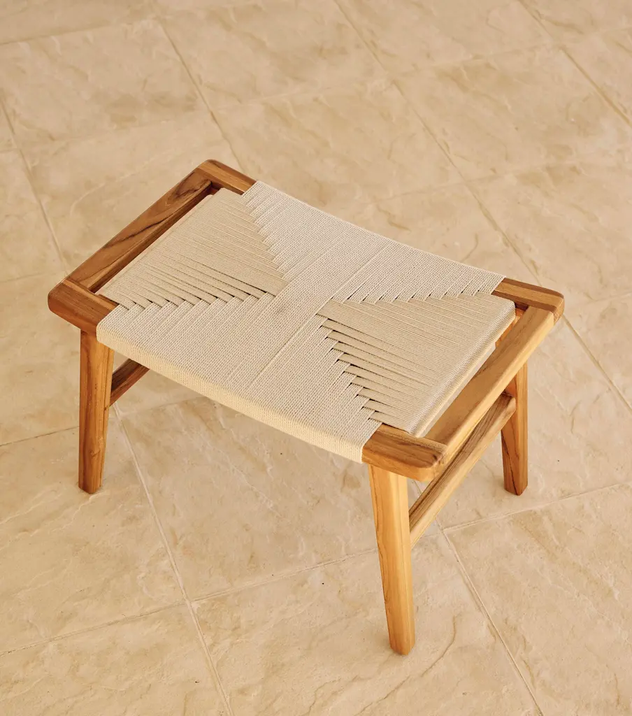 Inspired by Japanese woodworking and Mid-Century Modern Danish Cord designs, our Ottoman is a fresh take on timeless design. Each stool is made from FSC®-Certified teak wood and woven by hand using our own homespun rope.