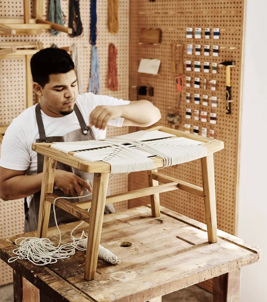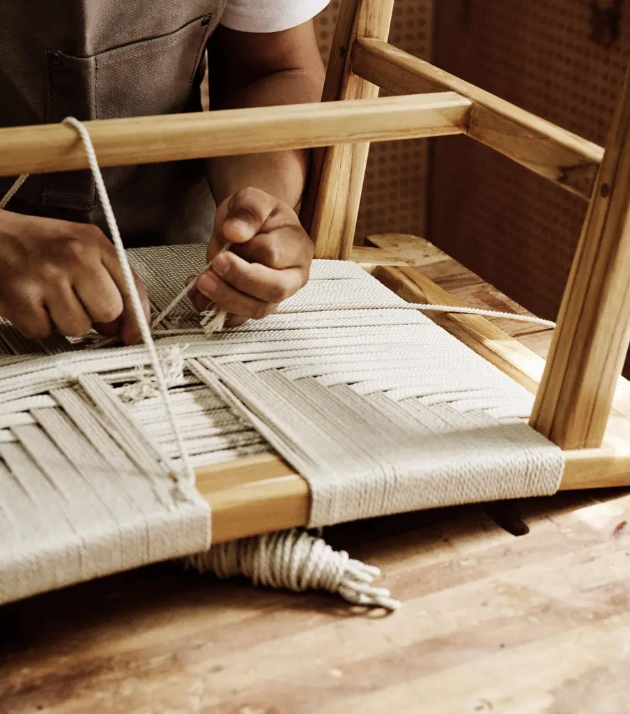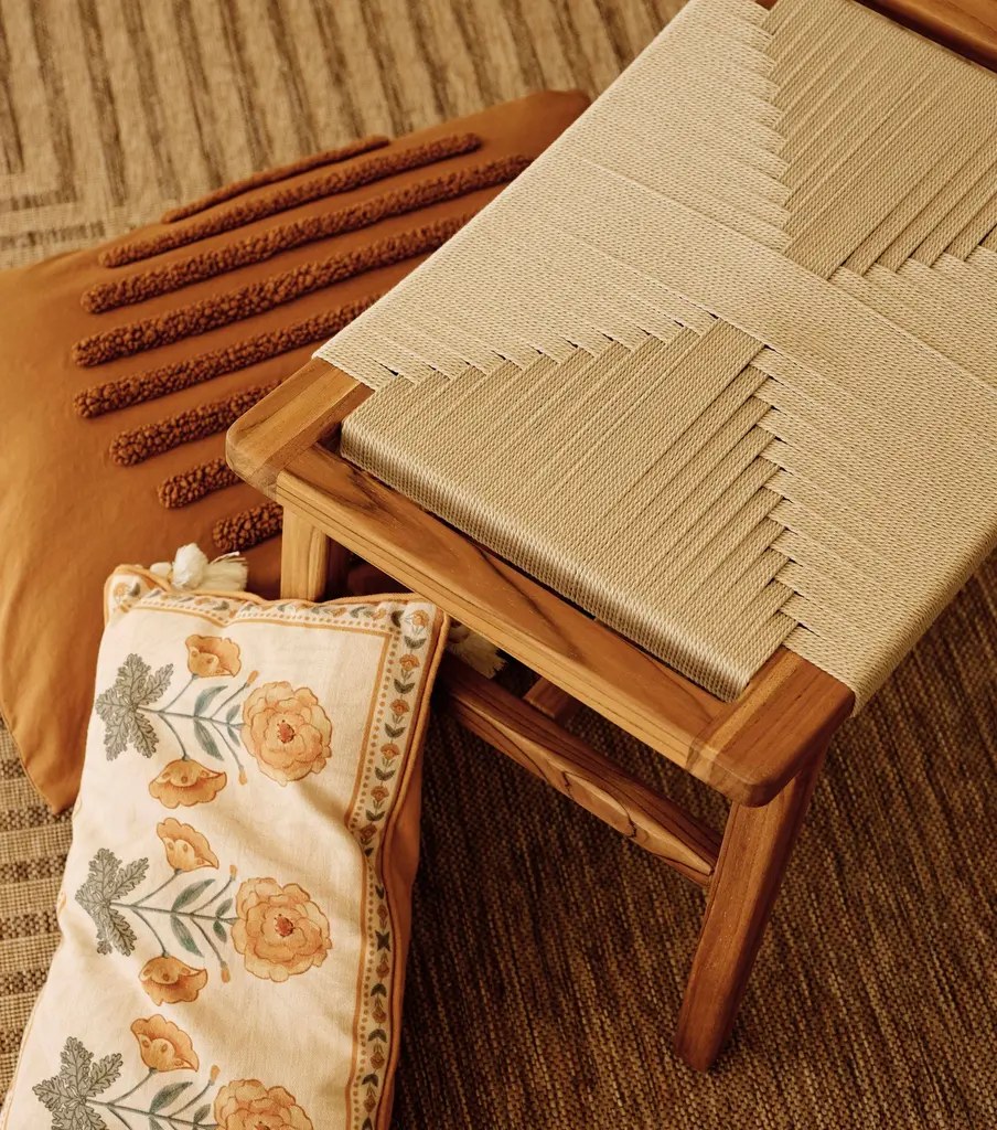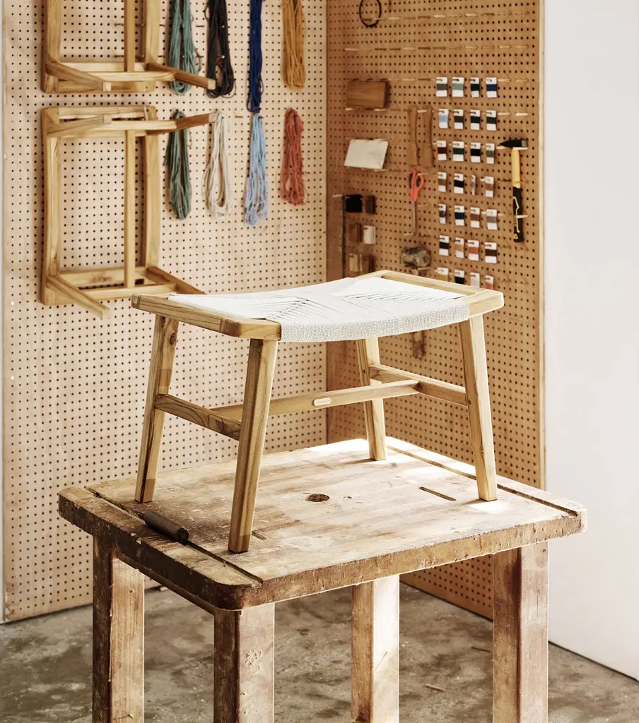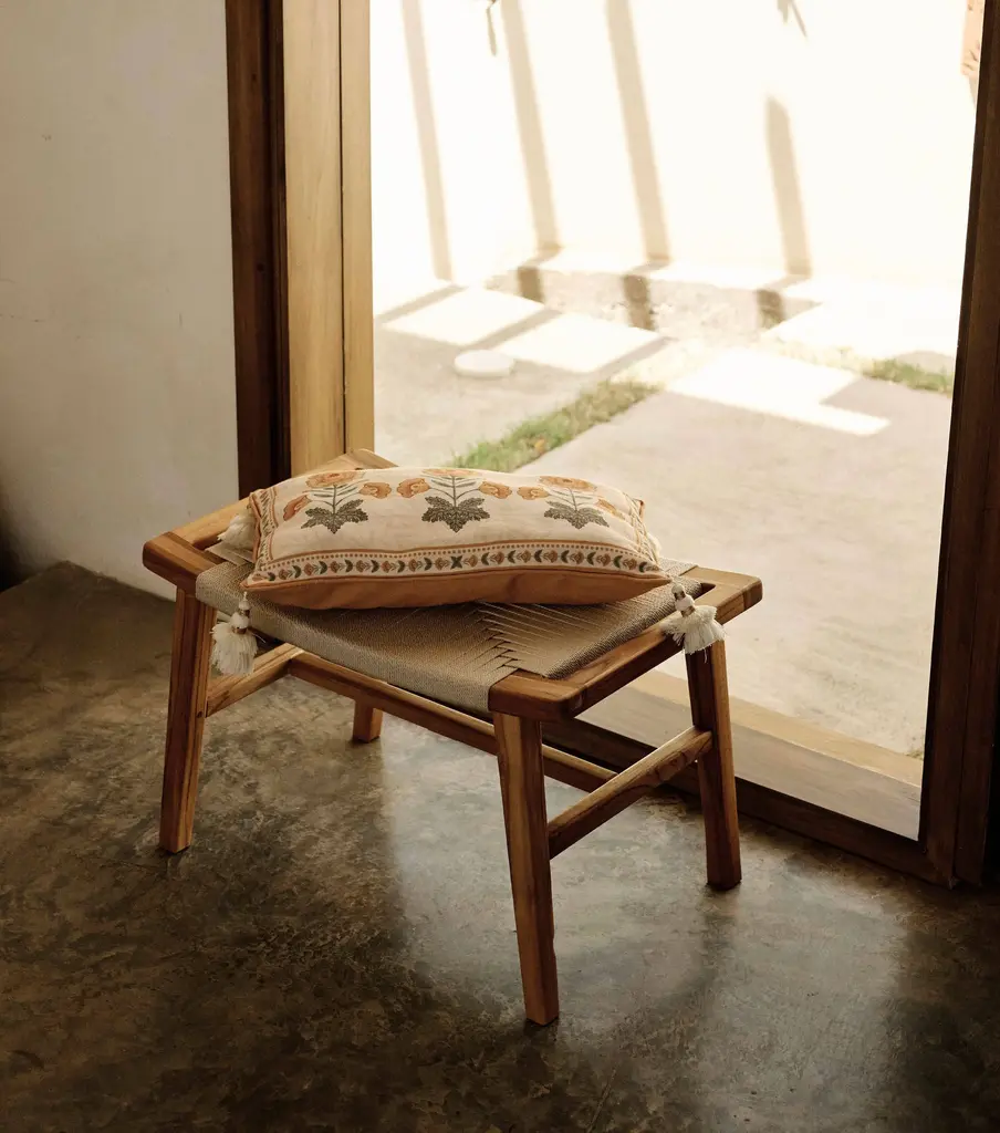 Inspired by Japanese woodworking and Mid-Century Modern Danish Cord designs, our Ottoman is a fresh take on timeless design. Each stool is made from FSC®-Certified teak wood and woven by hand using our own homespun rope.