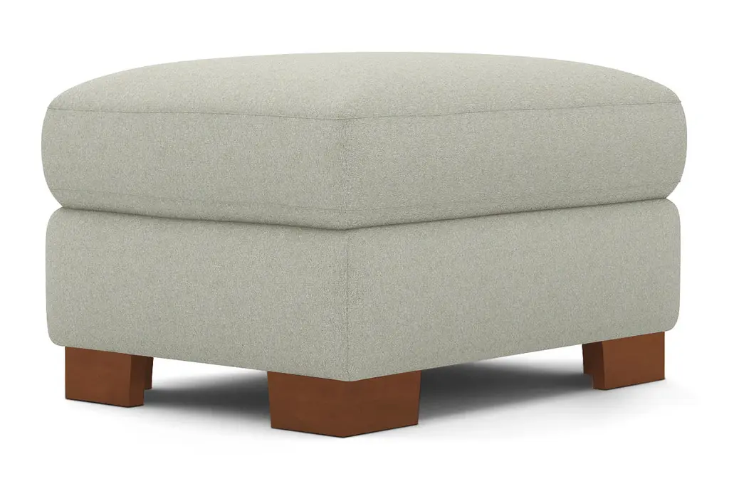 While the Melrose Ottoman is designed to perfectly match our Melrose Collection, pair it with your existing seating for a more eclectic vibe. Melrose can be upholstered in a wide variety of soft, textured poly-blend fabrics, in a handful of sizes and with your choice of three wooden leg finishes. Made in the USA!