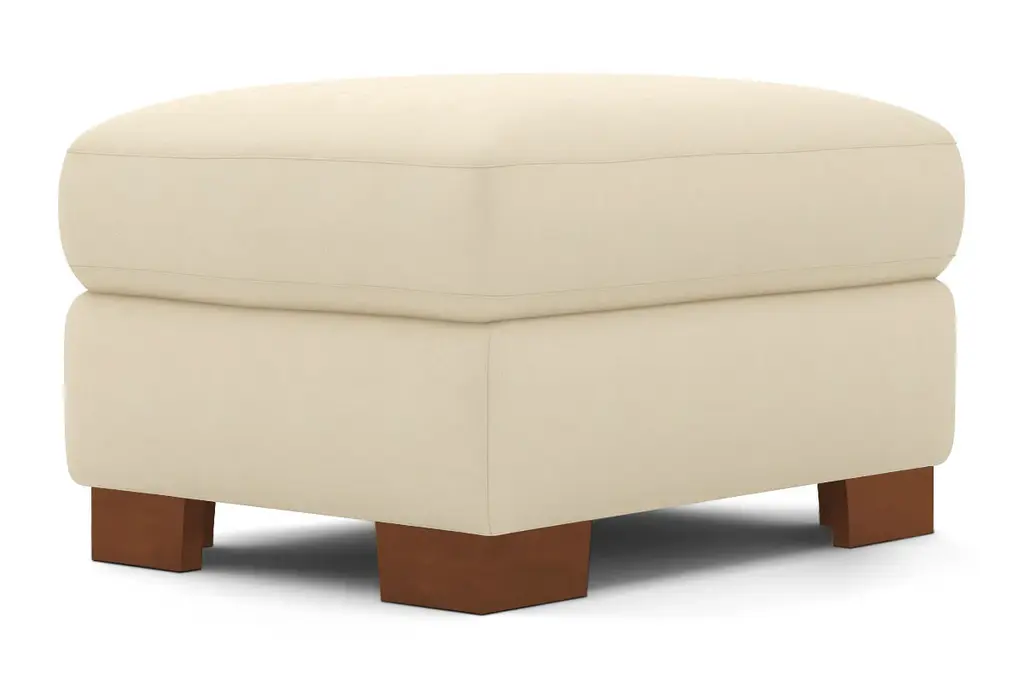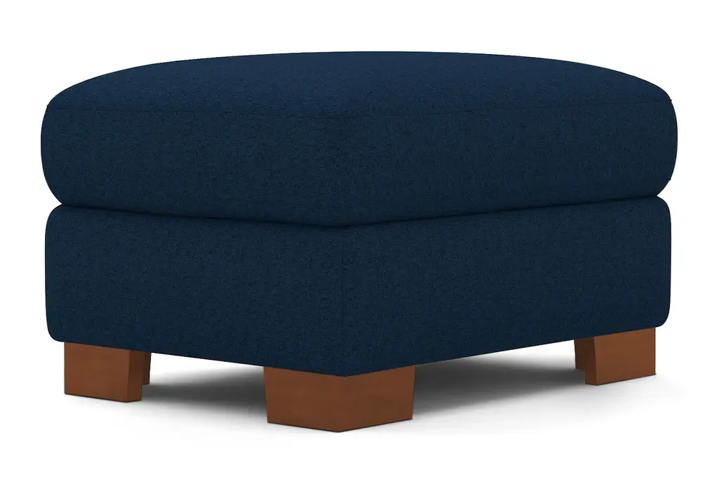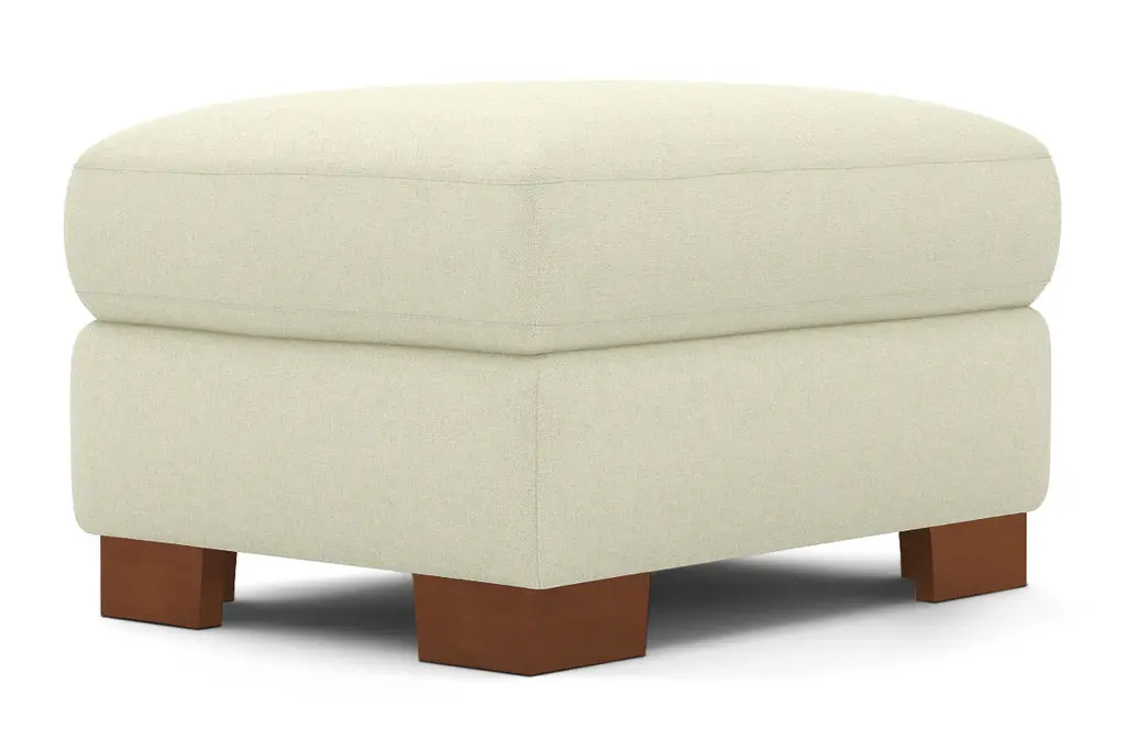 While the Melrose Ottoman is designed to perfectly match our Melrose Collection, pair it with your existing seating for a more eclectic vibe. Melrose can be upholstered in a wide variety of soft, textured poly-blend fabrics, in a handful of sizes and with your choice of three wooden leg finishes. Made in the USA!