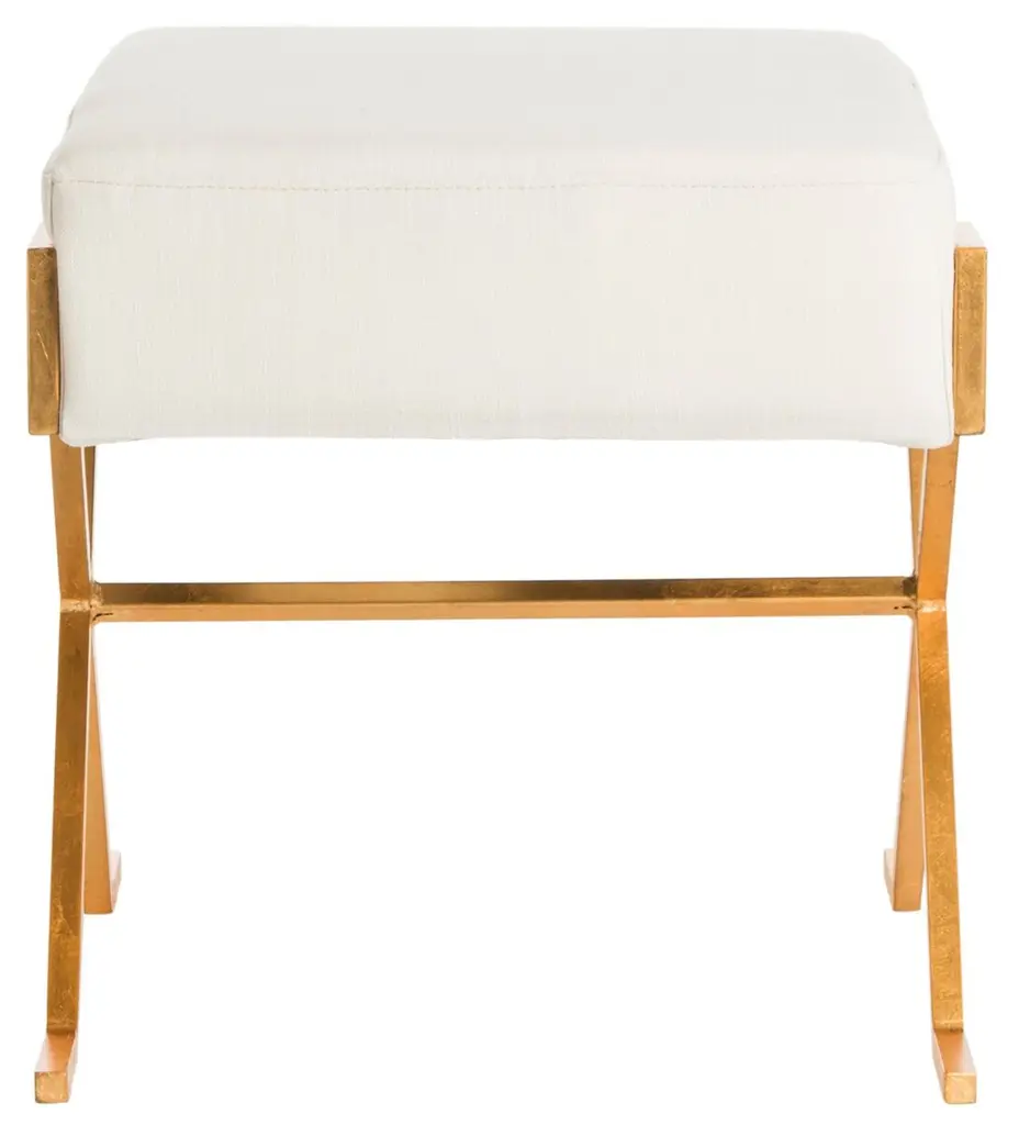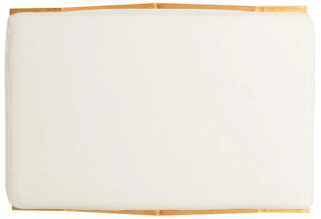 A sophisticated addition to any space, this ottoman is crafted of iron with Greek key detailing and a cushy, foam-filled seat upholstered in neutral linen.