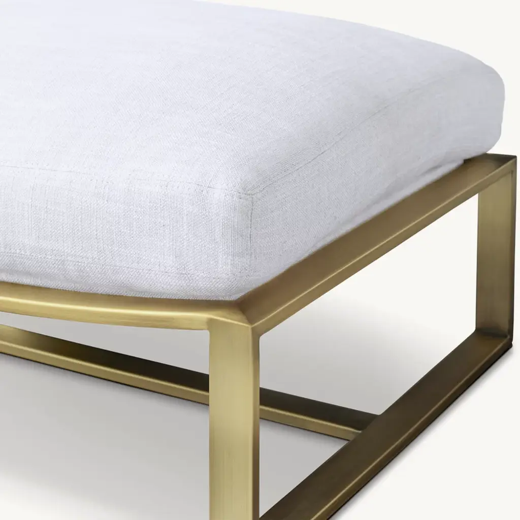 Milo Baughman designed this ottoman to complement his update to the original Milo Lounge. It features a linear, flat-bar frame that supports thick, ultra-comfortable cushions. As the original was, it's bench made by Thayer Coggin, master furniture crafters in North Carolina. SHOP THE ENTIRE COLLECTION