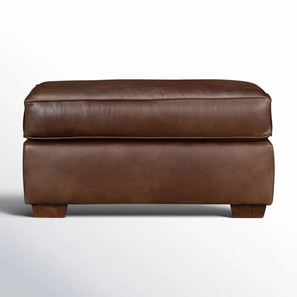Clean and inviting, the Mishal leather ottoman is a welcome addition to any room. Ottoman rests on low, finished block feet.to your living room with this casual leather ottoman.