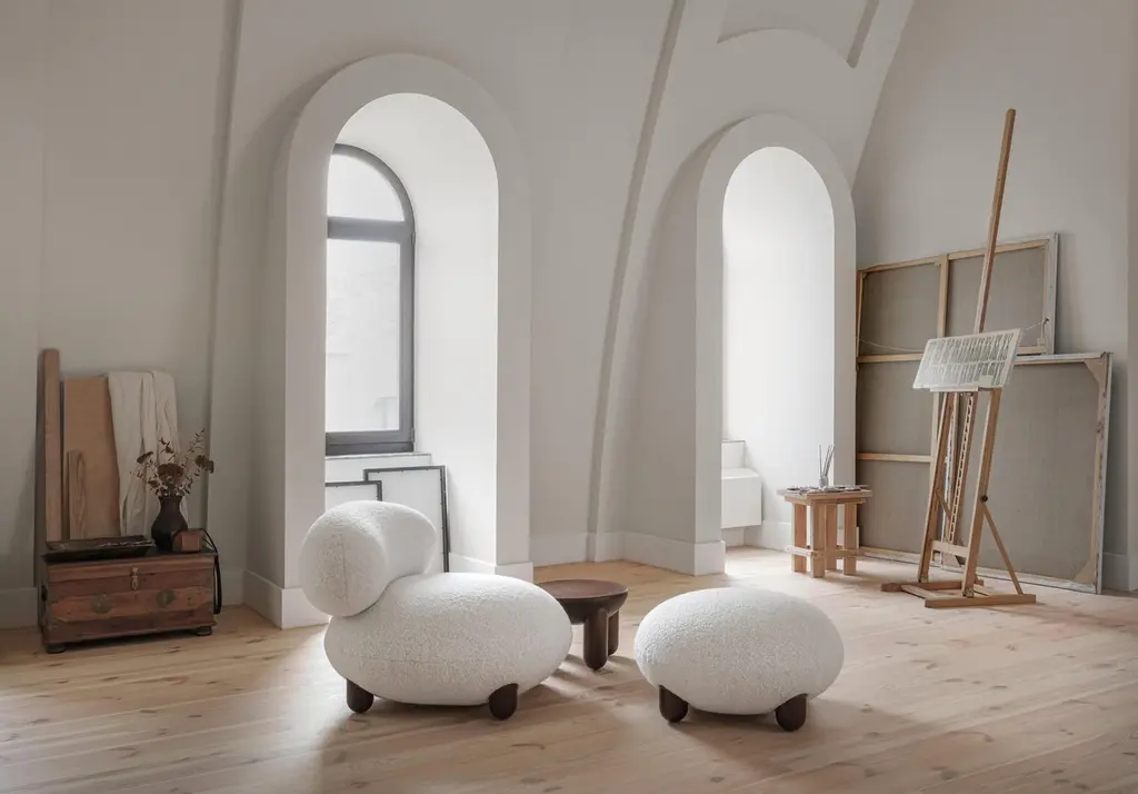 The “Flock” furniture collection draws on the idea that home is a place of comfort, sanctuary, and gathering and should be filled with personalized, character-rich, and eye-catching statement objects.Soft, voluptuous, sensual forms, natural materials, and pleasant-to-the-touch surfaces reflect a desire for warmth and cocooning."Subtly curved artistic silhouettes, soft fabric, and wooden legs define the furniture's relaxation and cuteness. We wanted to create furniture that would become part of the family, intimate and beloved," - said Kateryna Sokolova, designer of the Flock collection.The name "Flock," which means "to move or come together," refers to the collection's role as a peaceful oasis and the main meeting space within the home.Designer: Kateryna SokolovaMaterials: wood, plywood, foam rubber, injection-molded soft foam, textileFabrics: Dedar Karakorum / Karandash BoucleAvailable in a wide range of Dedar Boucle colors and other finishes and fabrics on request.Dimensions: D - 70 cm, H 41 cmLead Time: 2 months.