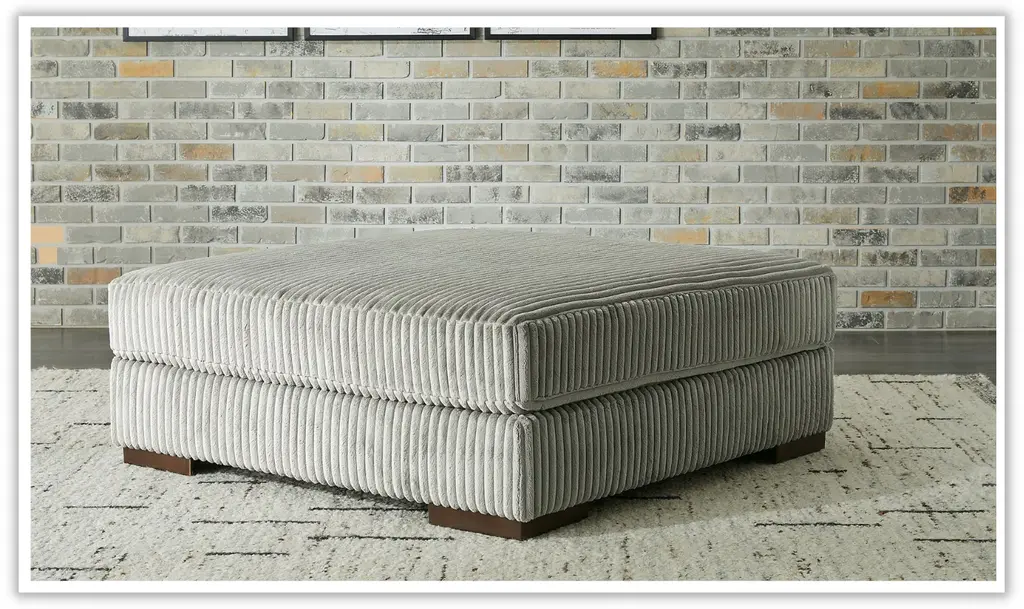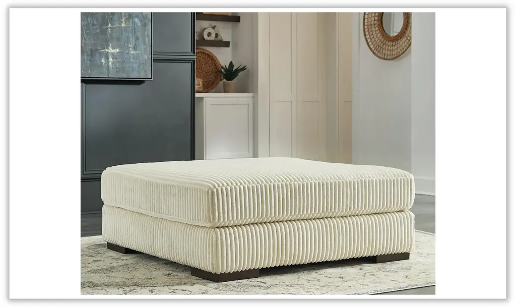 Introducing the Lindyn Oversized Ottoman by Modern Heritage —an embodiment of luxury and modern design. Indulge in the epitome of comfort and sophistication as you experience the plush opulence of this exquisite accent piece. Crafted with a keen sense of style and a focus on contemporary aesthetics, this ottoman is a true testament to the fusion of form and function. The Lindyn Ottoman captivates with its remarkable cord upholstery, a true showstopper that adds a touch of on-trend texture to any living space. The oversized dimensions of this piece allow it to command attention and transform your room into a haven of relaxation. Its cord fabric, meticulously selected for its sumptuously soft touch, beckons you to unwind in sheer comfort. As you sink your feet into the spacious cushioning, you'll find yourself instantly transported into a realm of tranquility and indulgence. The Lindyn Oversized Ottoman is not just a piece of furniture; it's an invitation to unwind, to savor moments of repose, and to embrace a lifestyle that appreciates the finer things in life. Designed to reflect your discerning taste, this ottoman embodies the perfect synergy between comfort and style. It embodies your commitment to the finer details, elevating your living space with its presence. With the Lindyn Oversized Ottoman, your living room becomes an oasis of upscale relaxation, a testament to your dedication to both opulence and comfort.
