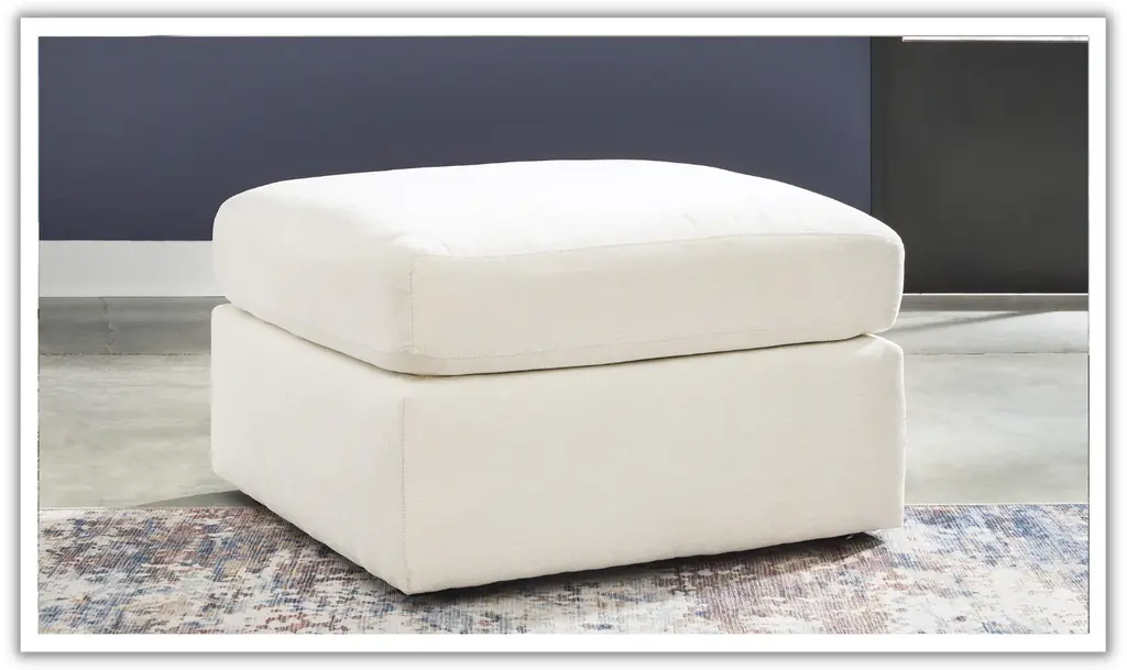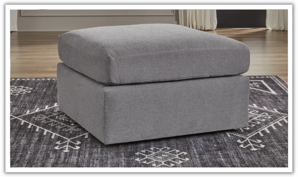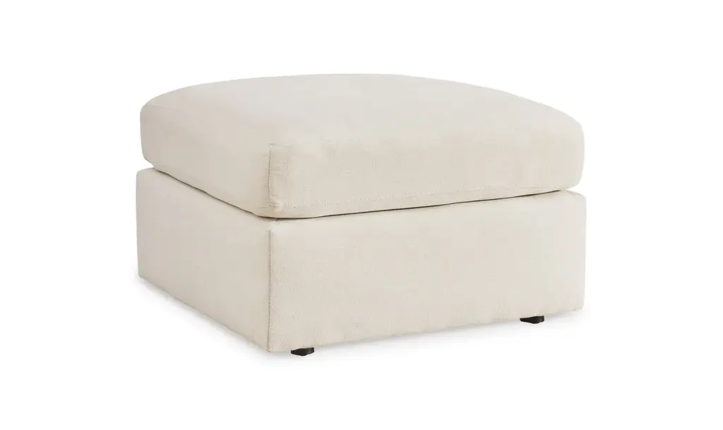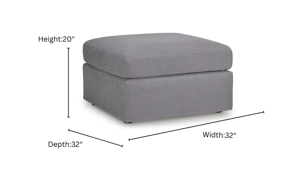 Modern Heritage Modmax Oversized Accent Fabric Ottoman Elevate your living space with the effortlessly stylish and supremely functional Modmax Oversized Accent Ottoman from the Modern Heritage collection. Designed with today's dynamic lifestyles in mind, this statement piece combines contemporary aesthetics with durable comfort for an unmatched lounging experience. Whether you're entertaining guests, propping up your feet after a long day, or using it as an impromptu coffee table, this oversized ottoman adapts to your every need. Its clean-lined, minimalist design makes it a seamless addition to any modern or transitional décor, while the generous proportions ensure plenty of room to relax. Crafted with a corner-blocked frame for long-lasting support and stability, the ottoman is firmly cushioned with high-resilience foam wrapped in plush poly fiber, offering the ideal balance of support and comfort. The Next-Gen Nuvella™ performance fabric upholstery is soft to the touch yet incredibly tough against spills, stains, and daily wear. Kid-friendly, pet-friendly, and life-friendly, this fabric lets you lounge without worry simply wipe with mild soap and water, or tackle tougher stains with a bleach solution. Available in a palette of sophisticated, versatile tones—Oyster ,Granite and Ink —the Modmax ottoman adds understated elegance to your space while maintaining high functionality. The non-skid legs keep it securely in place, no matter how you choose to use it.
