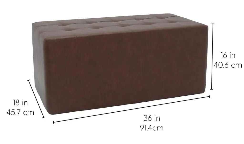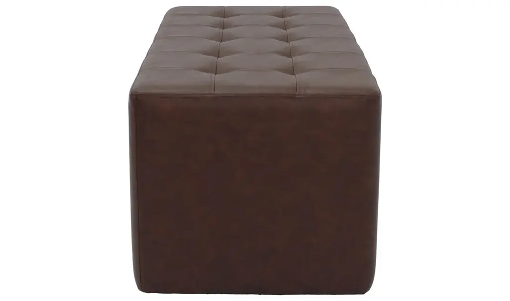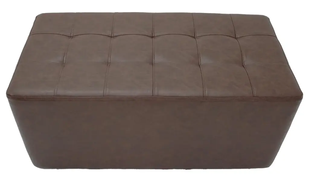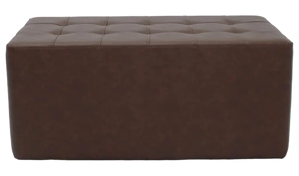 High-quality, commercial-grade upholstered ottoman for any environment, from ranch resort to modern farmhouse, and anywhere in betweenSturdy wood frame with attractive tufted seat covered in soft, vegan distressed faux leather and top-stitched seams for a rustic design to accent any roomMore than just a place to sit, ottomans make fantastic footrests and unassuming side tablesModular ottomans can be mixed and matched; choose from four rich colors that resemble hide to create a modern, country-inspired roomSoft leather-like polyurethane material is durable and easy to clean; wipe with a mild soap-and-water solution