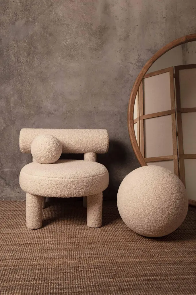 New NOOM furniture collection is dedicated to the 100th anniversary of the founding of the Bauhaus School in Germany. Ideas of functionalism and conciseness, the combination of craft and art, buildings and objects formed by a composition of simple geometric shapes, are still relevant. NOOM furniture is a tribute to the great thinkers who formed the modernist principles and brought them to life.A round ottoman appeal to interact: to pump, to play, to bubble.A perfect solution for the offices.All products in the collection are called by names of famous modernist artists and architects.Designer: Kateryna SokolovaMaterials: textile, molded polyurethane foamFabrics: Kvadrat Zero Boucle / JAB Ascendent Boucle and many other finishes by requestDimensions: D - 50 cm.