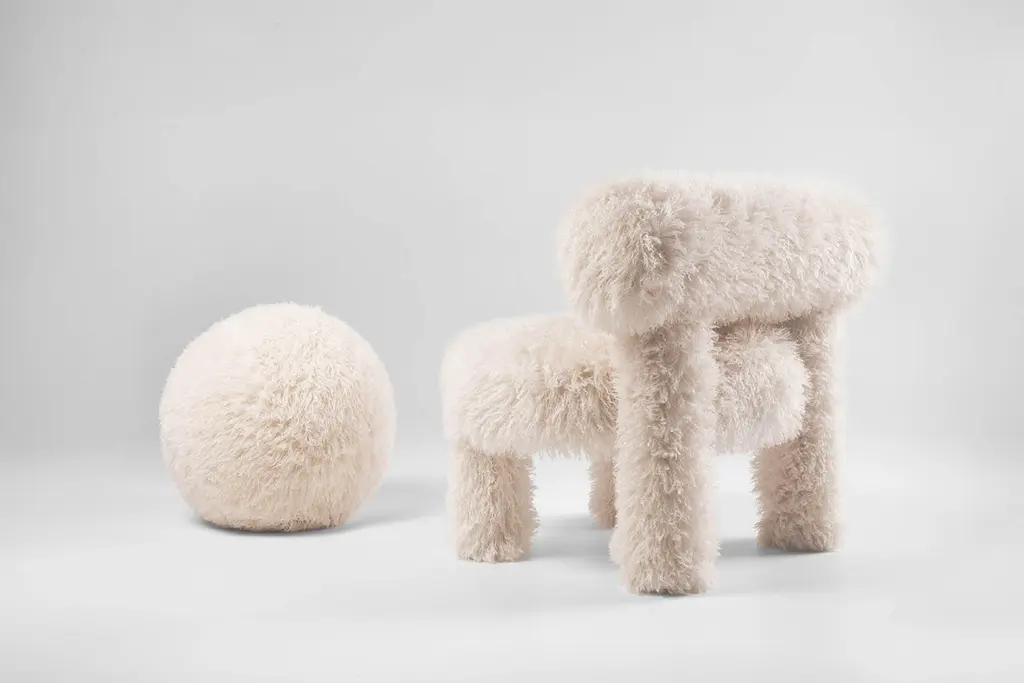 Modern Spheric Ottoman 50cm Fluffy Edition In Premium Faux Fur By Noom