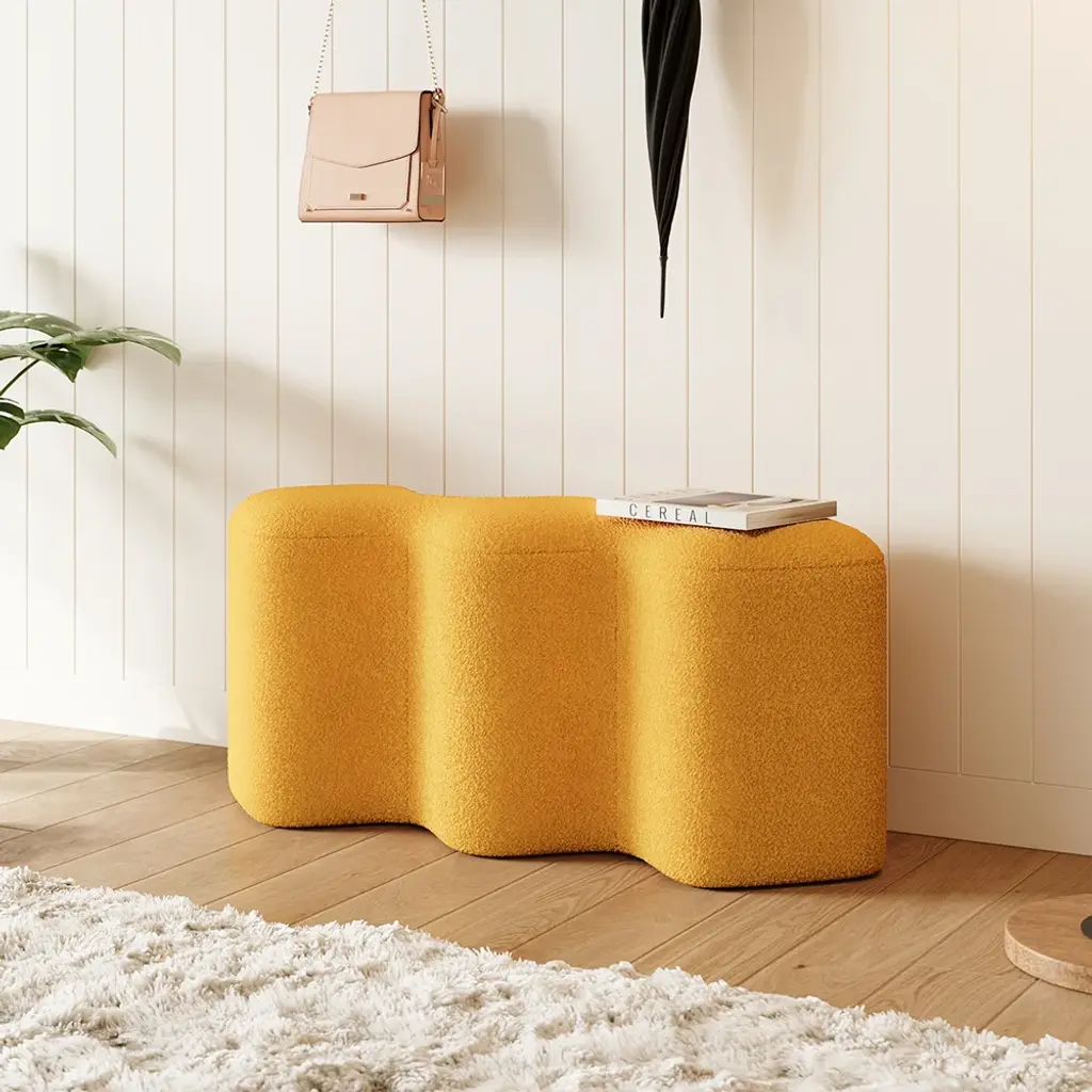 Modern Yellow Entryway Bench Boucle Upholstered Molecule Ottoman Wooden Frame