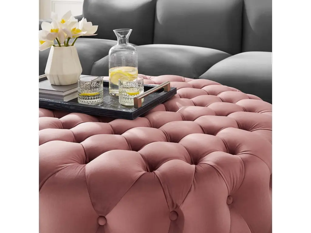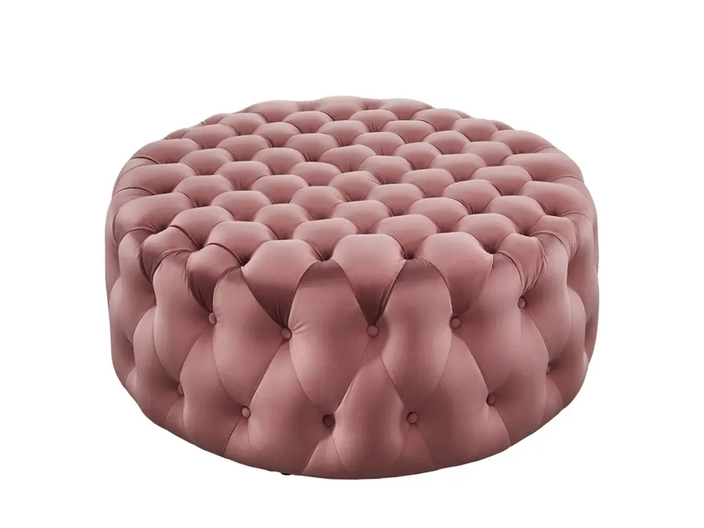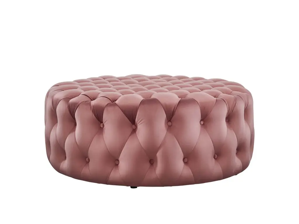Enliven your decor with Amour. This large button tufted round ottoman comes upholstered in soft and durable stain-resistant performance velvet fabric with dense foam padding for a luxurious seating experience. A versatile piece of furniture, instantly update your living room, bedroom, or entryway with this glamorous accent piece. Amour delivers an extra living room seat, a place to kick your feet up, or a convenient surface for magazines and other leisure items. Ottoman weight capacity: 330 lbs.