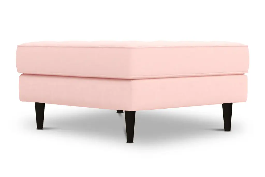 While the Monroe Ottoman is designed to perfectly match our Monroe Collection, pair it with your existing seating for a more eclectic vibe. Monroe can be upholstered in a wide variety of soft, textured poly-blend fabrics, in a handful of sizes and with your choice of three wooden leg finishes. Made in the USA!