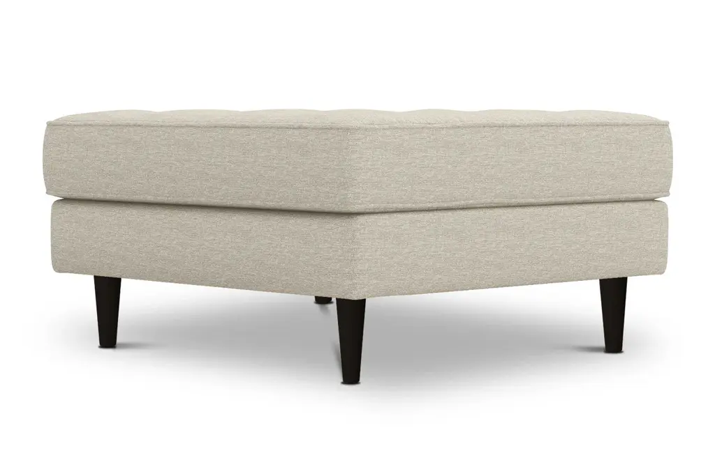 While the Monroe Ottoman is designed to perfectly match our Monroe Collection, pair it with your existing seating for a more eclectic vibe. Monroe can be upholstered in a wide variety of soft, textured poly-blend fabrics, in a handful of sizes and with your choice of three wooden leg finishes. Made in the USA!