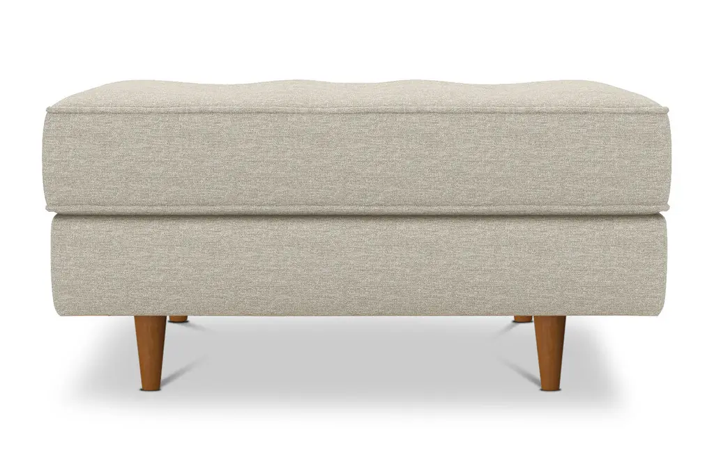 While the Monroe Ottoman is designed to perfectly match our Monroe Collection, pair it with your existing seating for a more eclectic vibe. Monroe can be upholstered in a wide variety of soft, textured poly-blend fabrics, in a handful of sizes and with your choice of three wooden leg finishes. Made in the USA!