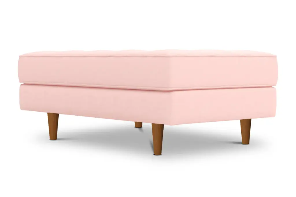 While the Monroe Ottoman is designed to perfectly match our Monroe Collection, pair it with your existing seating for a more eclectic vibe. Monroe can be upholstered in a wide variety of soft, textured poly-blend fabrics, in a handful of sizes and with your choice of three wooden leg finishes. Made in the USA!